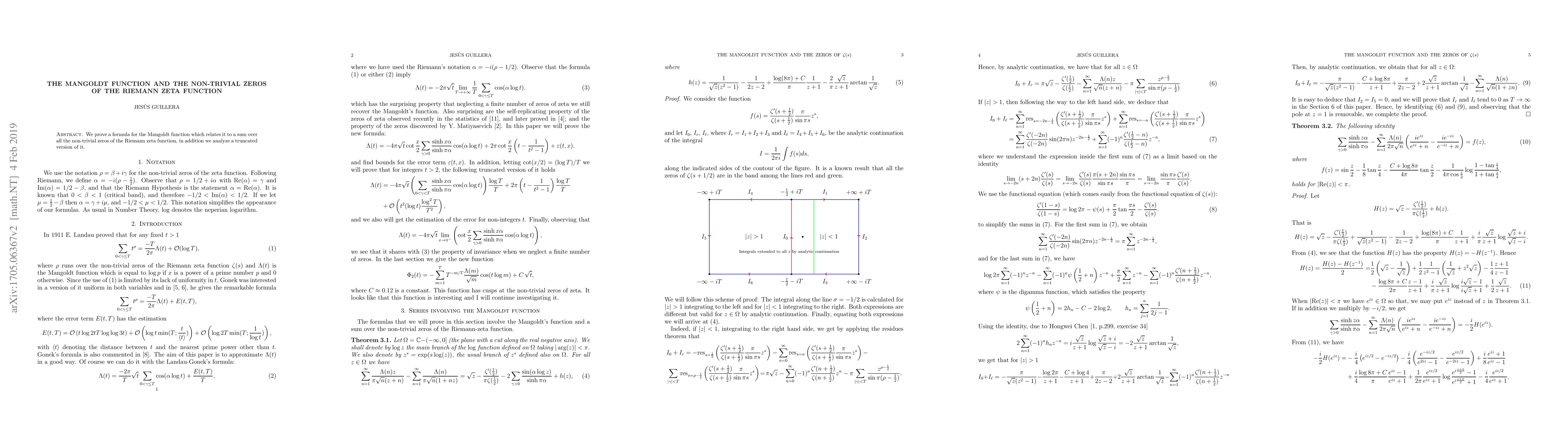 Summary: This paper establishes a formula linking the Mangoldt function to a sum involving the non-trivial zeros of the Riemann zeta function, and also examines a truncated version of this relationship.