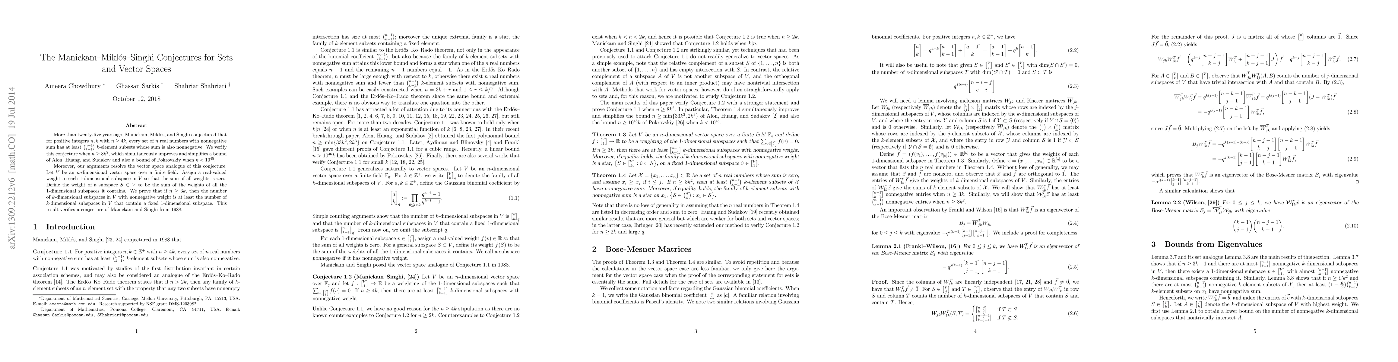 More than twenty-five years ago, Manickam, Mikl\'{o}s, and Singhi conjectured that for positive integers $n,k$ with $n \geq 4k$, every set of $n$ real numbers with nonnegative sum has at least $\binom{n-1}{k-1}$ $k$-element subsets whose sum is also nonnegative. We verify this conjecture when $n \geq 8k^{2}$, which simultaneously improves and simplifies a bound of Alon, Huang, and Sudakov and also a bound of Pokrovskiy when $k < 10^{45}$. Moreover, our arguments resolve the vector space analogue of this conjecture. Let $V$ be an $n$-dimensional vector space over a finite field. Assign a real-valued weight to each $1$-dimensional subspace in $V$ so that the sum of all weights is zero. Define the weight of a subspace $S \subset V$ to be the sum of the weights of all the $1$-dimensional subspaces it contains. We prove that if $n \geq 3k$, then the number of $k$-dimensional subspaces in $V$ with nonnegative weight is at least the number of $k$-dimensional subspaces in $V$ that contain a fixed $1$-dimensional subspace. This result verifies a conjecture of Manickam and Singhi from 1988.
