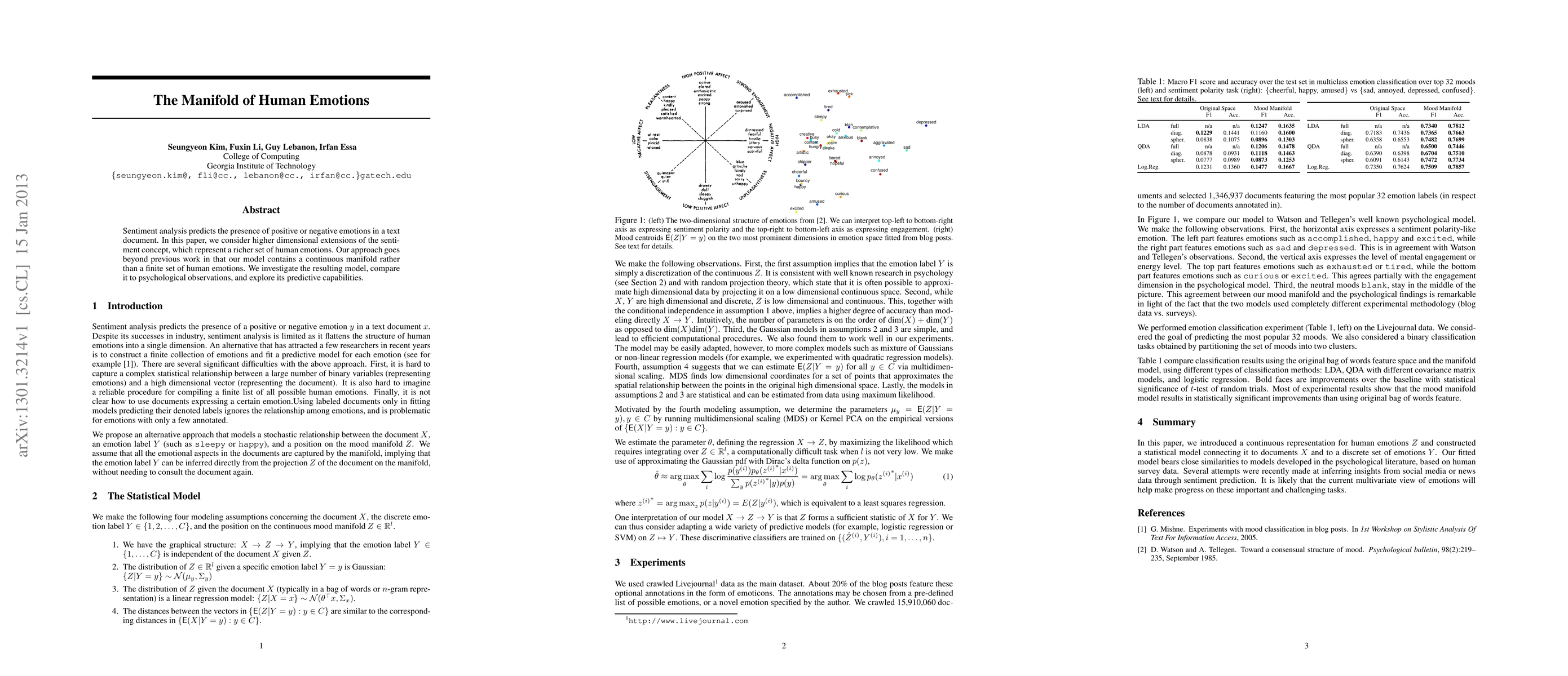 A research paper proposes a new approach to sentiment analysis that represents human emotions on a continuous manifold, allowing for a richer set of emotional expressions than traditional finite models.