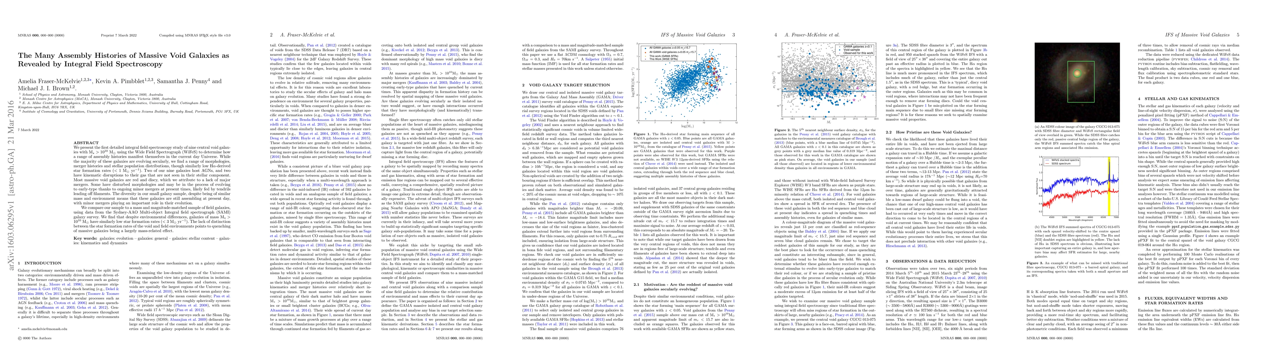 This study uses integral field spectroscopy to investigate the assembly histories of massive void galaxies, finding a range of morphologies and stellar population distributions despite low star formation rates, suggesting quenching is a mass-related effect.