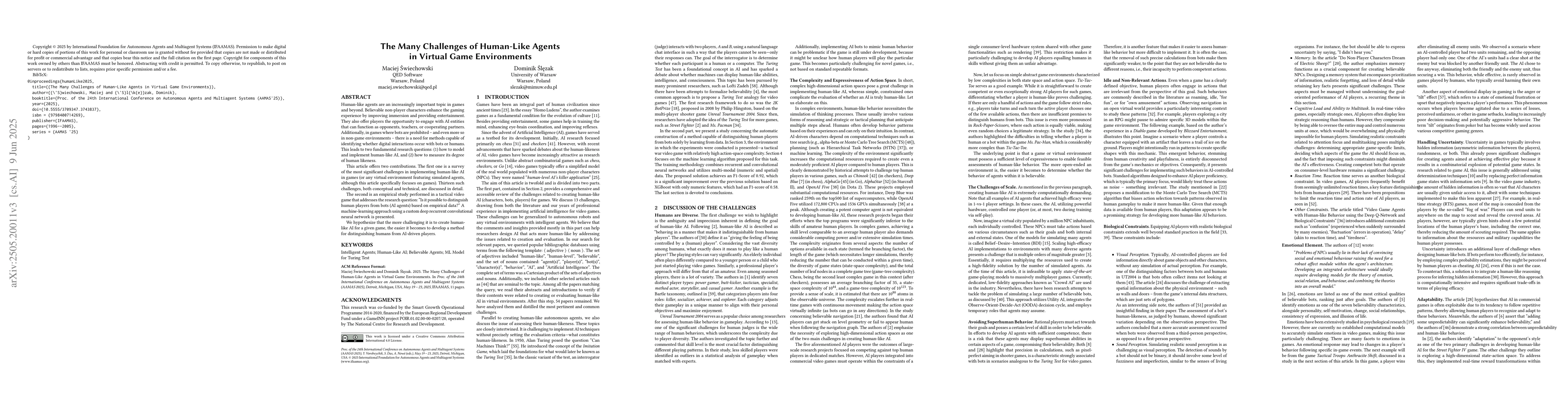 A study explores challenges of creating human-like AI in virtual game environments and develops a method to distinguish human players from bots using machine-learning approach.