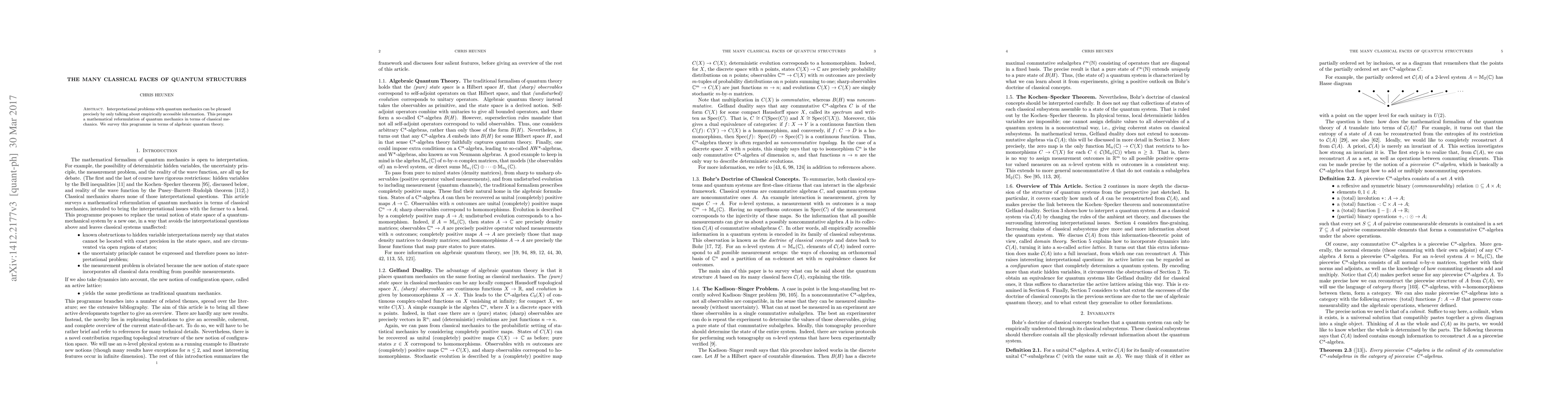 Interpretational problems with quantum mechanics can be phrased precisely by only talking about empirically accessible information. This prompts a mathematical reformulation of quantum mechanics in terms of classical mechanics. We survey this programme in terms of algebraic quantum theory.