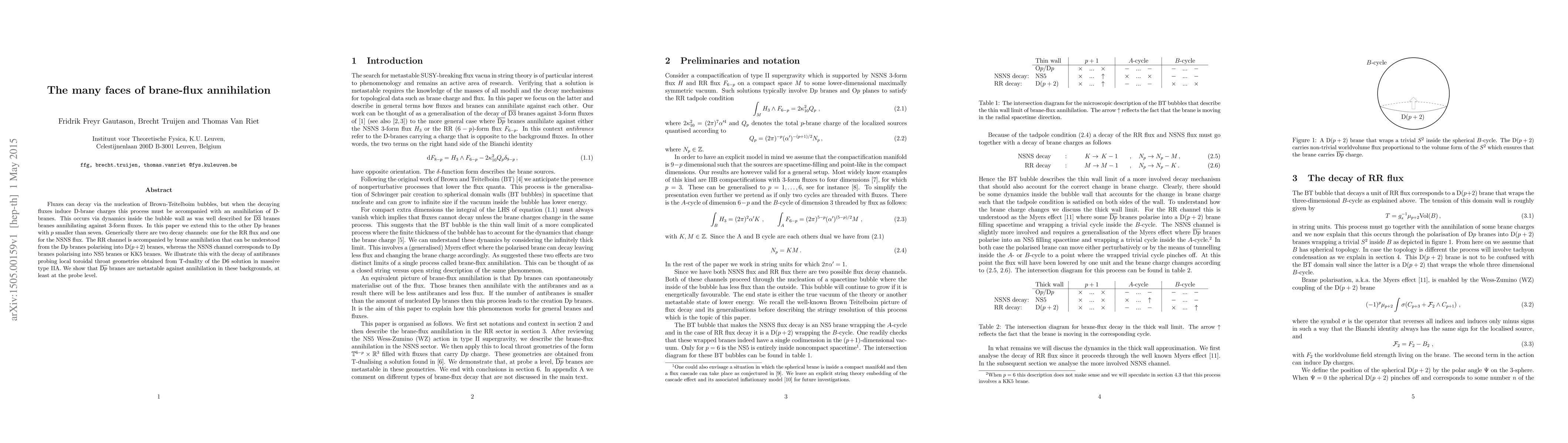 This paper explores the decay of fluxes via Brown-Teitelboim bubble nucleation, focusing on the annihilation dynamics of D-branes accompanying this decay. It extends the analysis to Dp branes (with p < 7), identifying two decay channels for RR and NSNS fluxes, and demonstrating the metastability of anti-Dp branes in toroidal throat geometries.