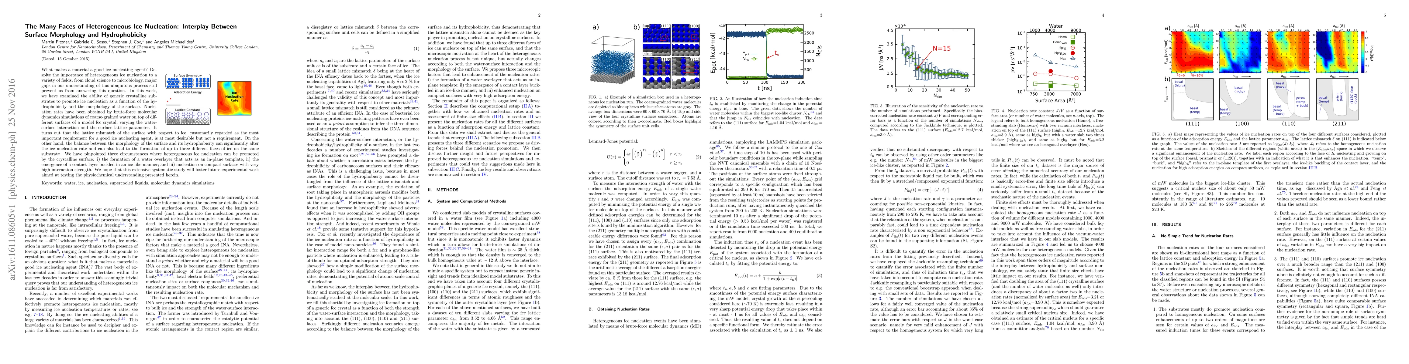What makes a material a good ice nucleating agent? Despite the importance of heterogeneous ice nucleation to a variety of fields, from cloud science to microbiology, major gaps in our understanding of this ubiquitous process still prevent us from answering this question. In this work, we have examined the ability of generic crystalline substrates to promote ice nucleation as a function of the hydrophobicity and the morphology of the surface. Nucleation rates have been obtained by brute-force molecular dynamics simulations of coarse-grained water on top of different surfaces of a model fcc crystal, varying the water-surface interaction and the surface lattice parameter. It turns out that the lattice mismatch of the surface with respect to ice, customarily regarded as the most important requirement for a good ice nucleating agent, is at most desirable but not a requirement. On the other hand, the balance between the morphology of the surface and its hydrophobicity can significantly alter the ice nucleation rate and can also lead to the formation of up to three different faces of ice on the same substrate. We have pinpointed three circumstances where heterogeneous ice nucleation can be promoted by the crystalline surface: (i) the formation of a water overlayer that acts as an in-plane template; (ii) the emergence of a contact layer buckled in an ice-like manner; and (iii) nucleation on compact surfaces with very high interaction strength. We hope that this extensive systematic study will foster future experimental work aimed at testing the physiochemical understanding presented herein.