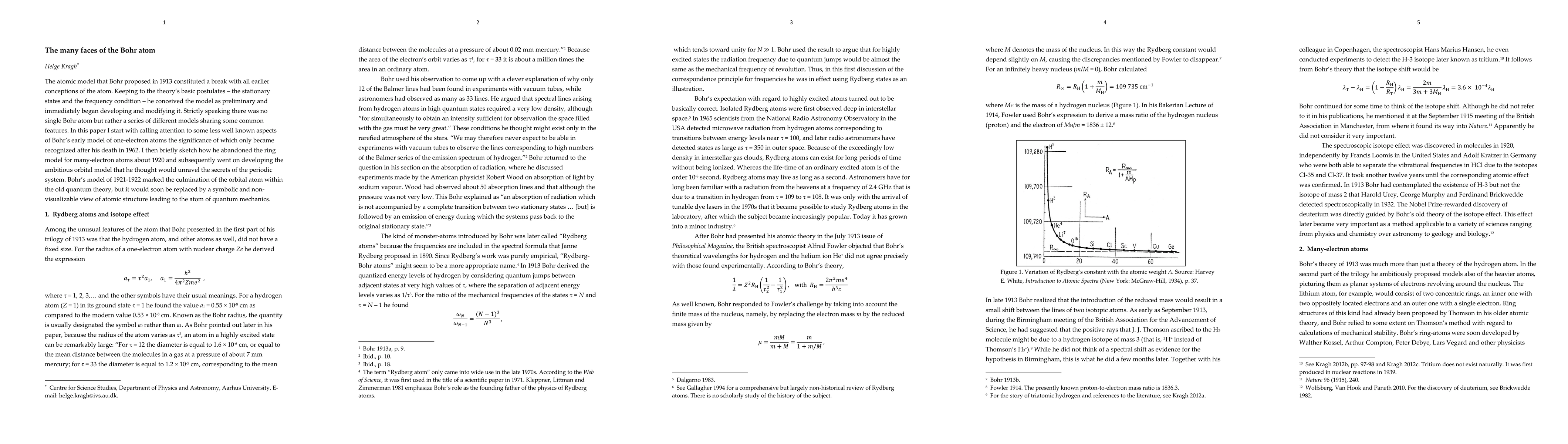 The atomic model that Niels Bohr suggested in 1913 celebrated its greatest victories in connection with one-electron atoms. Among them were the isotopic spectral effect and what became known as Rydberg atoms, insights that were fully recognized only many years later. He considered the original ring model a first step towards an understanding of atomic structure, and during the following years he developed it into more ambitious models that, he hoped, would also describe many-electron atoms. His theory of the periodic system marked the culmination of the orbital atom within the framework of the old quantum theory. However, the theory would soon be replaced by more symbolic models that heralded the coming of the quantum-mechanical atom.