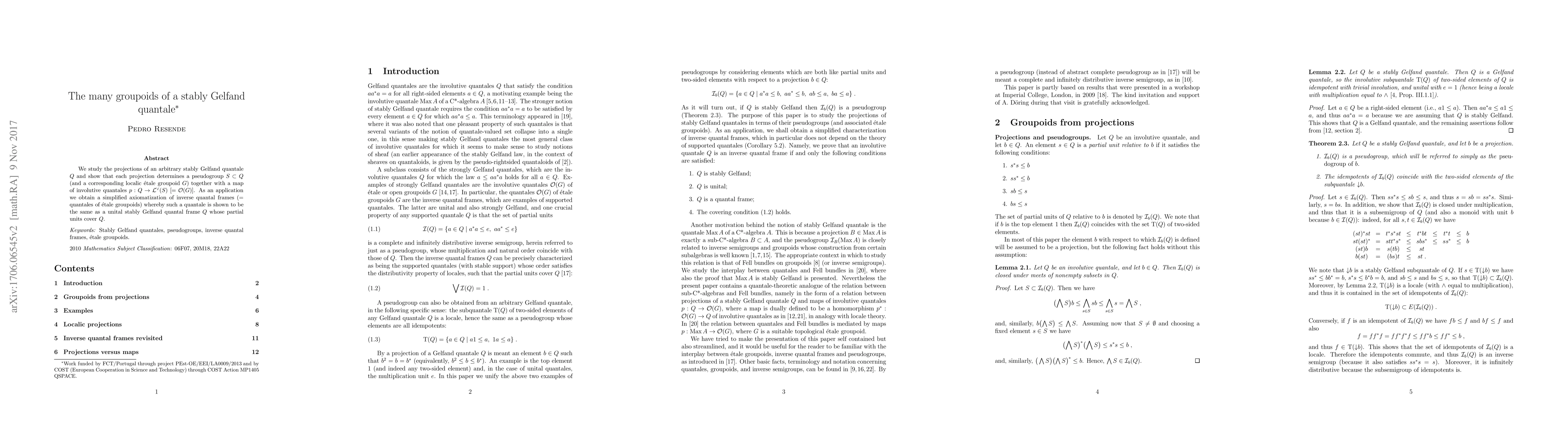 We study the projections of an arbitrary stably Gelfand quantale $Q$ and show that each projection determines a pseudogroup $S\subset Q$ (and a corresponding localic \'etale groupoid $G$) together with a map of involutive quantales $p:Q\to\mathcal L^{\bigvee}(S)\ [=\mathcal O(G)]$. As an application we obtain a simplified axiomatization of inverse quantal frames (= quantales of \'etale groupoids) whereby such a quantale is shown to be the same as a unital stably Gelfand quantal frame whose partial units cover $Q$.