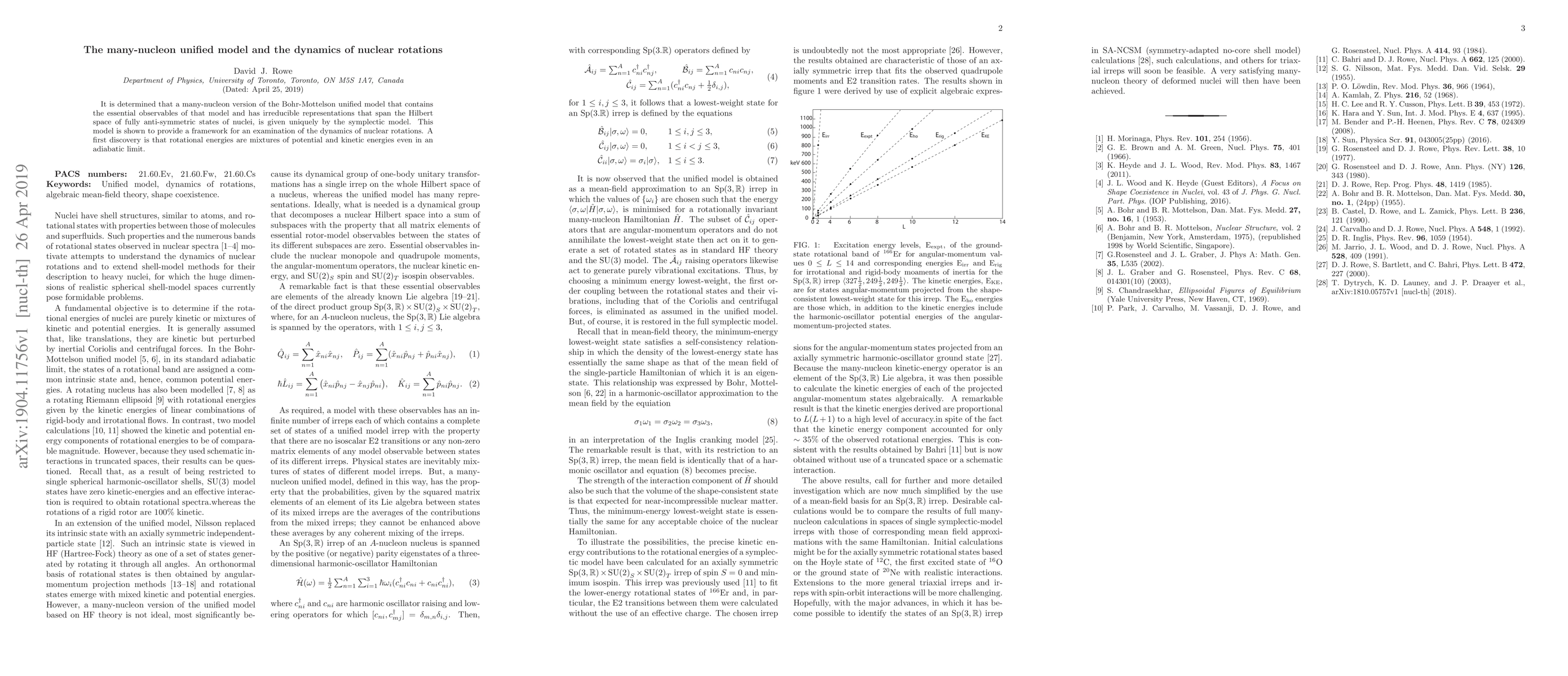 The paper proposes a many-nucleon unified model based on the symplectic model, which captures nuclear observables and spans the Hilbert space of nuclei. It reveals that rotational energies are composed of potential and kinetic energies, even in an adiabatic limit.