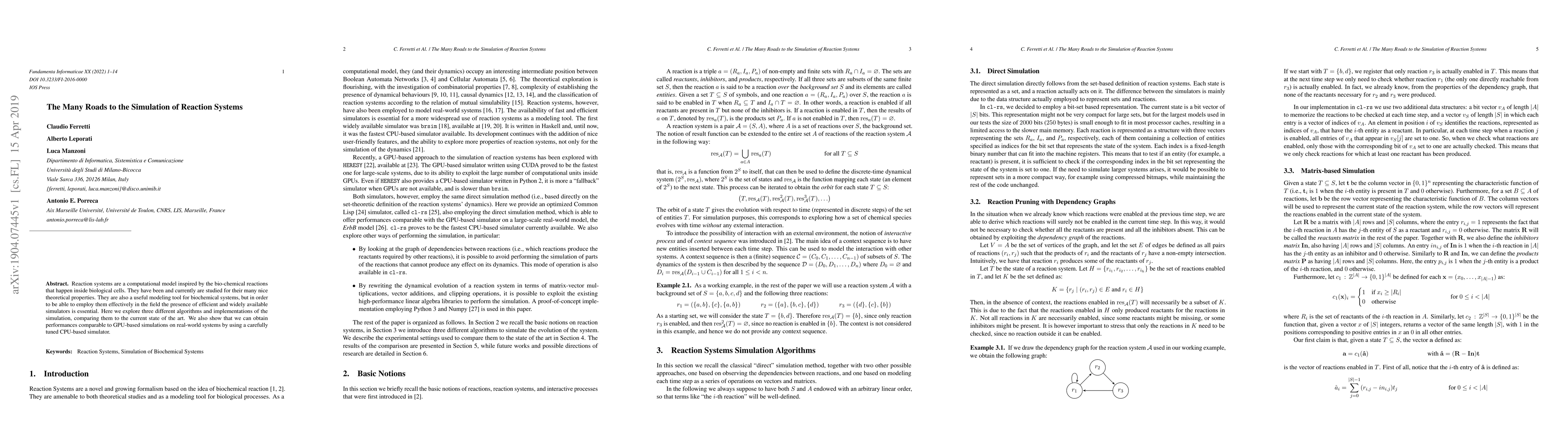 Reaction systems are a computational model inspired by the bio-chemical reactions that happen inside biological cells. They have been and currently are studied for their many nice theoretical properties. They are also a useful modeling tool for biochemical systems, but in order to be able to employ them effectively in the field the presence of efficient and widely available simulators is essential. Here we explore three different algorithms and implementations of the simulation, comparing them to the current state of the art. We also show that we can obtain performances comparable to GPU-based simulations on real-world systems by using a carefully tuned CPU-based simulator.