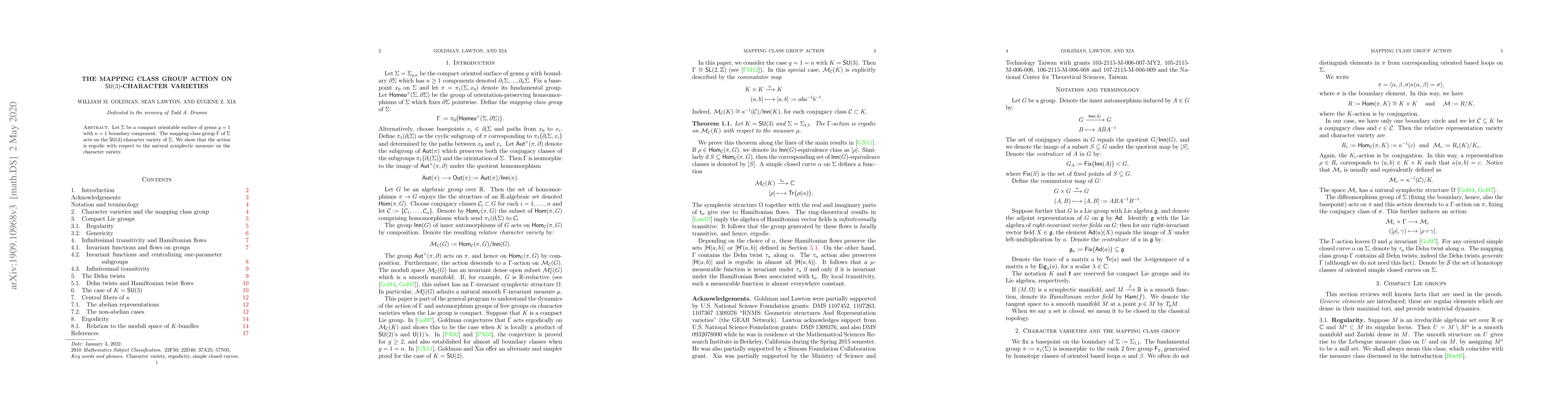 Let $\Sigma$ be a compact orientable surface of genus $g=1$ with $n=1$ boundary component. The mapping class group $\Gamma$ of $\Sigma$ acts on the SU(3)-character variety of $\Sigma$. We show that the action is ergodic with respect to the natural symplectic measure on the character variety.