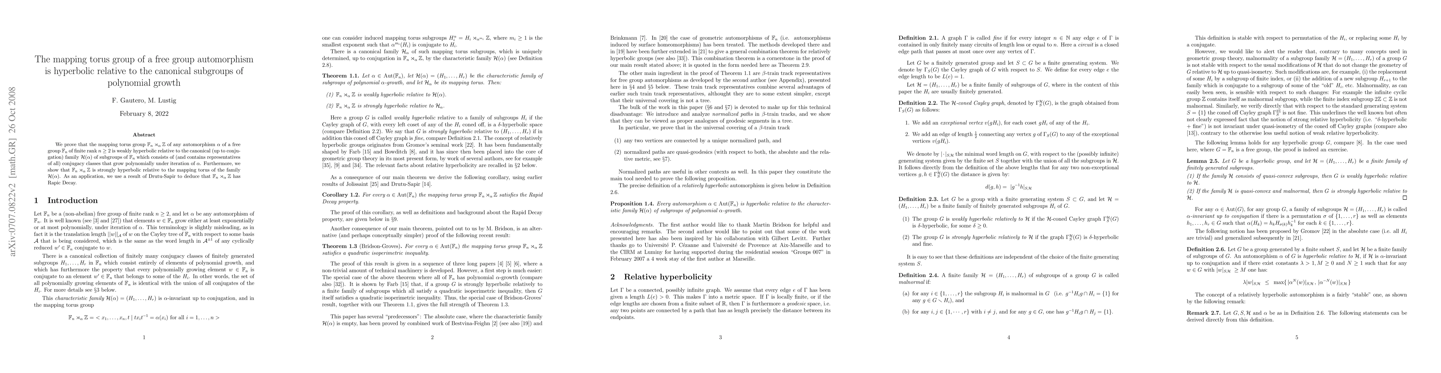 We prove that the mapping torus group $\FN \rtimes_{\alpha} \Z$ of any automorphism $\alpha$ of a free group $\FN$ of finite rank $n \geq 2$ is weakly hyperbolic relative to the canonical (up to conjugation) family $\mathcal H(\alpha)$ of subgroups of $\FN$ which consists of (and contains representatives of all) conjugacy classes that grow polynomially under iteration of $\alpha$. Furthermore, we show that $\FN \rtimes_{\alpha} \Z$ is strongly hyperbolic relative to the mapping torus of the family $\mathcal H(\alpha)$. As an application, we use a result of Drutu-Sapir to deduce that $\FN \rtimes_{\alpha} \Z$ has Rapic Decay.