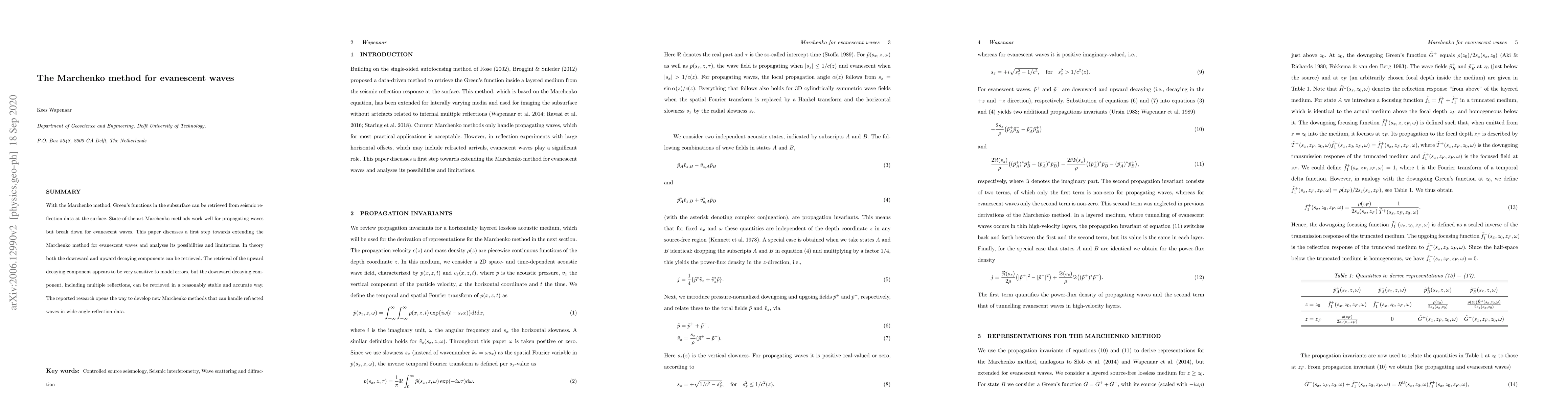 This paper proposes an initial approach to extend the Marchenko method for retrieving subsurface Green's functions from seismic reflection data, focusing on evanescent waves. While the method shows promise for retrieving downward decaying components, including multiple reflections, the retrieval of upward decaying components remains highly sensitive to model errors.