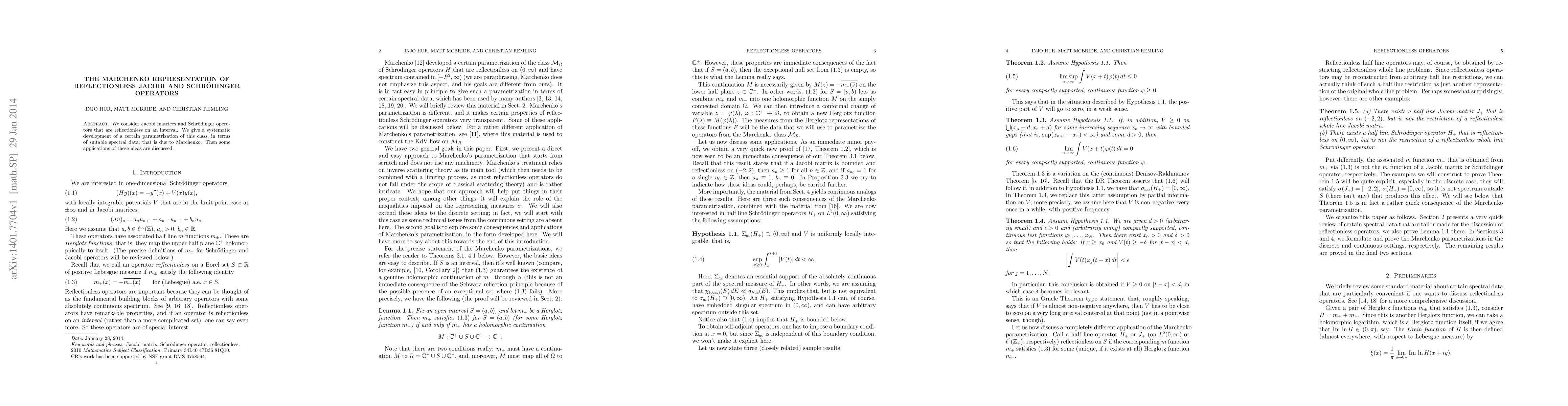 We consider Jacobi matrices and Schrodinger operators that are reflectionless on an interval. We give a systematic development of a certain parametrization of this class, in terms of suitable spectral data, that is due to Marchenko. Then some applications of these ideas are discussed.