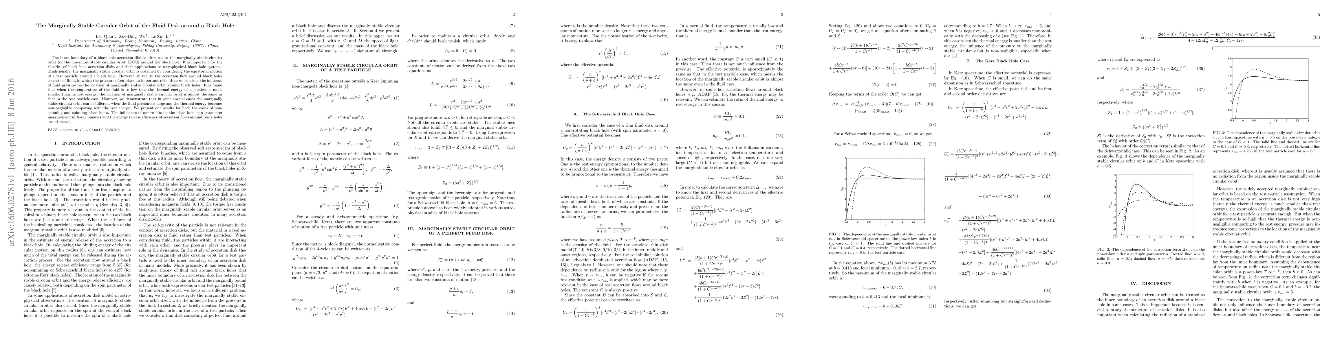 This paper investigates the marginally stable circular orbit in fluid accretion disks around black holes, considering the influence of fluid pressure. It finds that while low-temperature fluid orbits closely match those of test particles, higher temperatures and significant fluid pressure can shift the orbit location, impacting black hole spin parameter measurements and accretion efficiency.