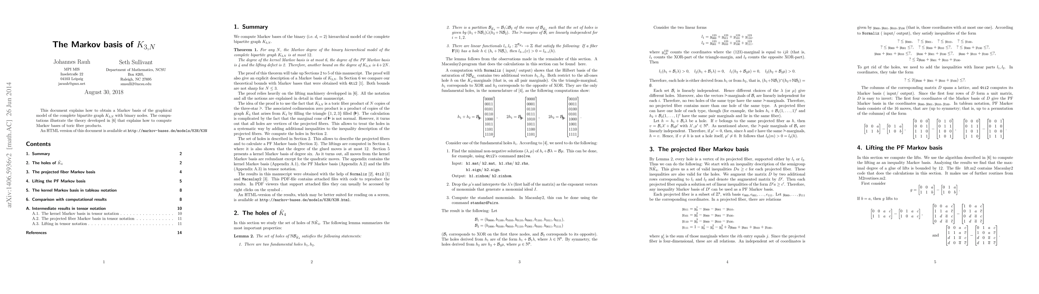 This document explains how to obtain a Markov basis of the graphical model of the complete bipartite graph $K_{3,N}$ with binary nodes. The computations illustrate the theory developed in arXiv:1404.6392 that explains how to compute Markov bases of toric fiber products.
