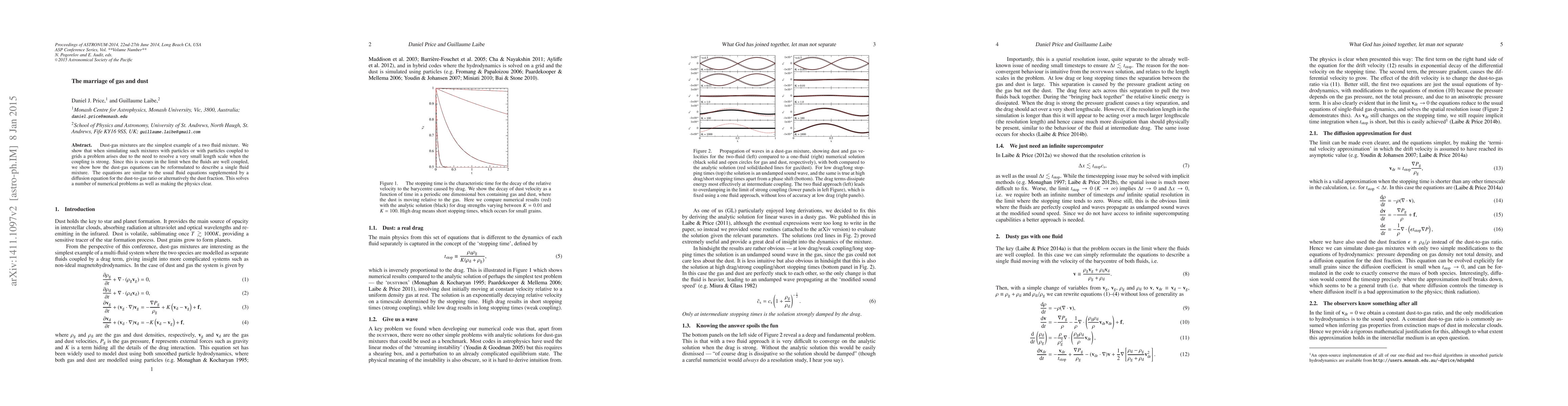 Dust-gas mixtures are the simplest example of a two fluid mixture. We show that when simulating such mixtures with particles or with particles coupled to grids a problem arises due to the need to resolve a very small length scale when the coupling is strong. Since this is occurs in the limit when the fluids are well coupled, we show how the dust-gas equations can be reformulated to describe a single fluid mixture. The equations are similar to the usual fluid equations supplemented by a diffusion equation for the dust-to-gas ratio or alternatively the dust fraction. This solves a number of numerical problems as well as making the physics clear.