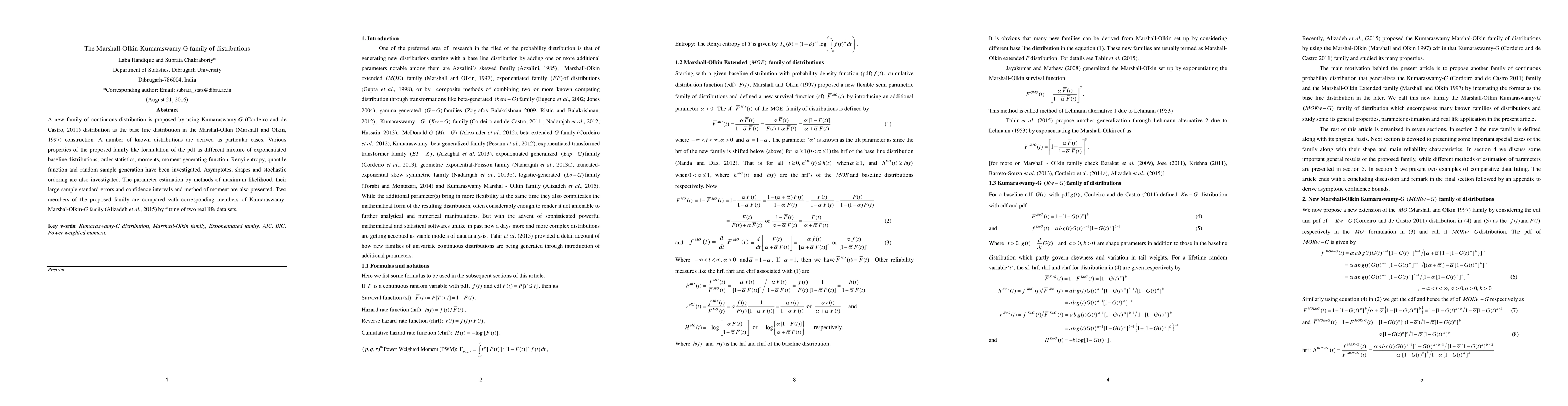 This paper introduces a new Marshall-Olkin-Kumarswamy-G (MOKG) family of continuous distributions, derived from the Kumaraswamy-G distribution using the Marshall-Olkin construction. The study explores various properties, including pdf formulation, moments, entropy, and parameter estimation, and compares two members with the Kumaraswamy-Marshal-Olkin-G family using real data sets.