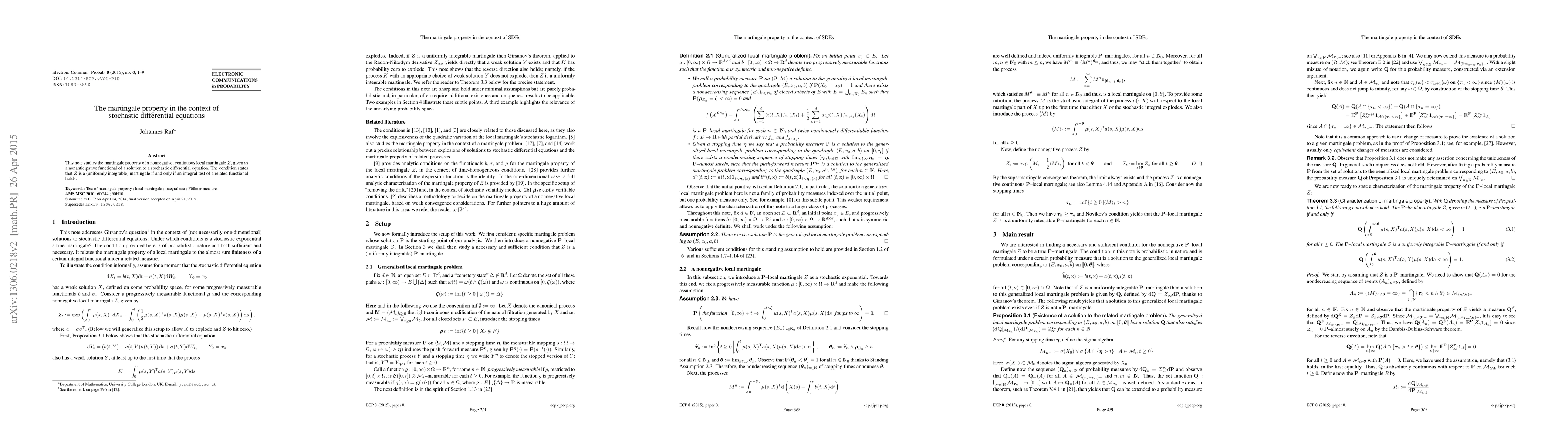 This paper investigates whether a nonnegative function Z satisfies the martingale property if and only if a specific integral test holds true for its related functional. It explores conditions under which Z is a uniformly integrable martingale.