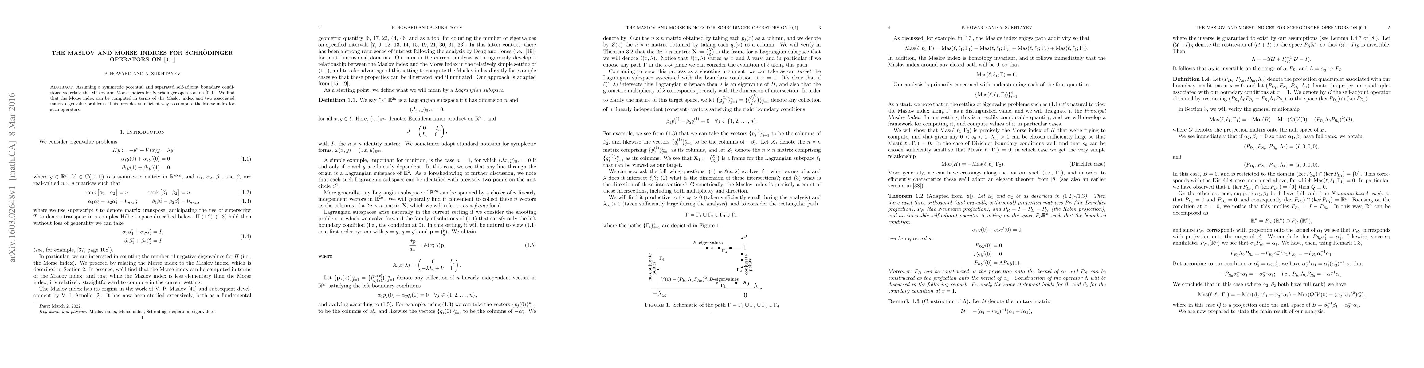 This paper establishes a relationship between the Maslov and Morse indices for symmetric potential Schrödinger operators on the interval [0, 1], showing that the Morse index can be determined via the Maslov index and matrix eigenvalue problems, thus offering a computational method for the Morse index.