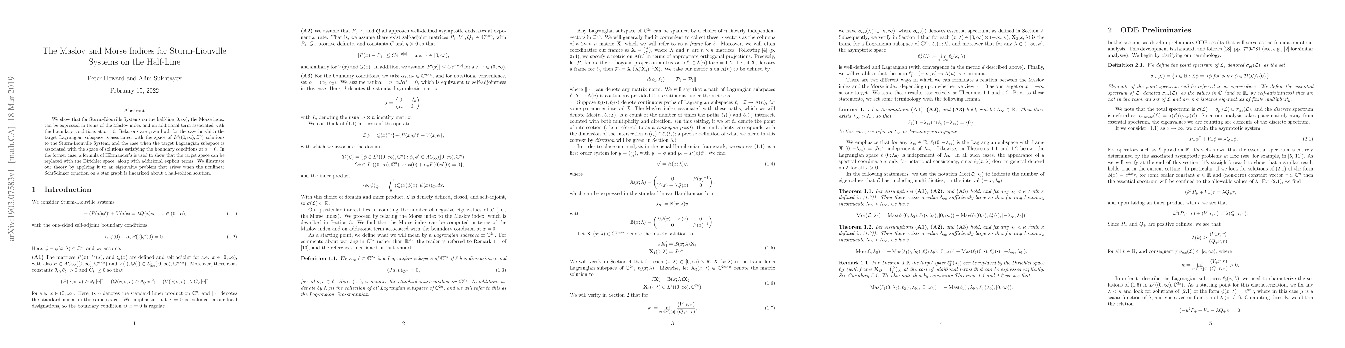 We show that for Sturm-Liouville Systems on the half-line $[0,\infty)$, the Morse index can be expressed in terms of the Maslov index and an additional term associated with the boundary conditions at $x = 0$. Relations are given both for the case in which the target Lagrangian subspace is associated with the space of $L^2 ((0,\infty), \mathbb{C}^{n})$ solutions to the Sturm-Liouville System, and the case when the target Lagrangian subspace is associated with the space of solutions satisfying the boundary conditions at $x = 0$. In the former case, a formula of H\"ormander's is used to show that the target space can be replaced with the Dirichlet space, along with additional explicit terms. We illustrate our theory by applying it to an eigenvalue problem that arises when the nonlinear Schr\"odinger equation on a star graph is linearized about a half-soliton solution.