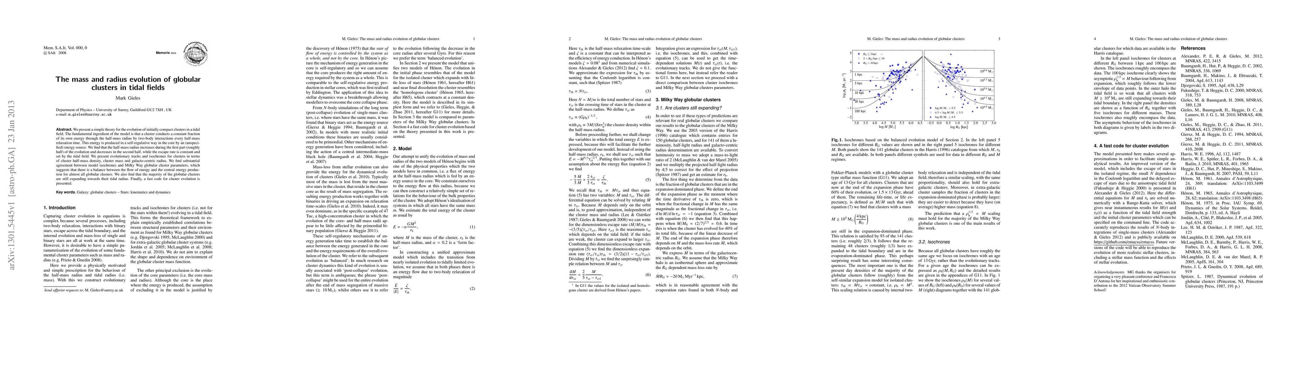 We present a simple theory for the evolution of initially compact clusters in a tidal field. The fundamental ingredient of the model is that a cluster conducts a constant fraction of its own energy through the half-mass radius by two-body interactions every half-mass relaxation time. This energy is produced in a self-regulative way in the core by an (unspecified) energy source. We find that the half-mass radius increases during the first part (roughly half) of the evolution and decreases in the second half, while the escape rate is constant and set by the tidal field. We present evolutionary tracks and isochrones for clusters in terms of cluster half-mass density, cluster mass and galacto-centric radius. We find substantial agreement between model isochrones and Milky Way globular cluster parameters, which suggests that there is a balance between the flow of energy and the central energy production for almost all globular clusters. We also find that the majority of the globular clusters are still expanding towards their tidal radius. Finally, a fast code for cluster evolution is presented.