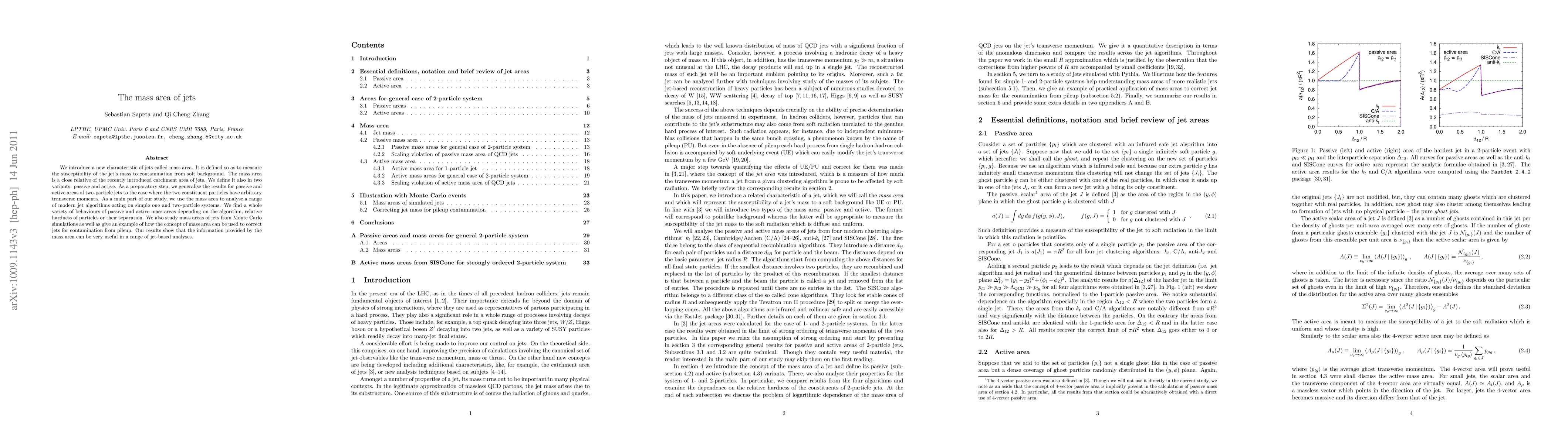 We introduce a new characteristic of jets called mass area. It is defined so as to measure the susceptibility of the jet's mass to contamination from soft background. The mass area is a close relative of the recently introduced catchment area of jets. We define it also in two variants: passive and active. As a preparatory step, we generalise the results for passive and active areas of two-particle jets to the case where the two constituent particles have arbitrary transverse momenta. As a main part of our study, we use the mass area to analyse a range of modern jet algorithms acting on simple one and two-particle systems. We find a whole variety of behaviours of passive and active mass areas depending on the algorithm, relative hardness of particles or their separation. We also study mass areas of jets from Monte Carlo simulations as well as give an example of how the concept of mass area can be used to correct jets for contamination from pileup. Our results show that the information provided by the mass area can be very useful in a range of jet-based analyses.