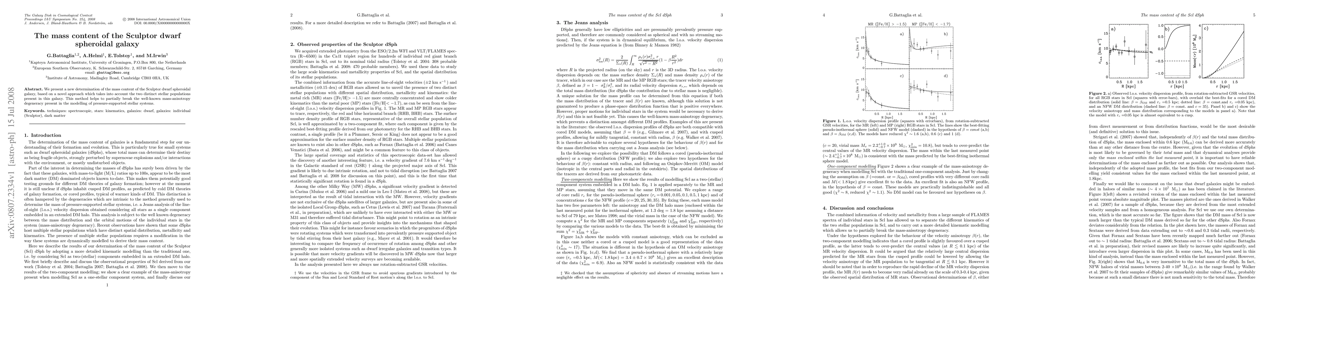 The paper introduces a novel method to determine the mass content of dSphs by considering their distinct stellar populations, breaking the mass-anisotropy degeneracy and revealing intrinsic rotation in Sculptor.