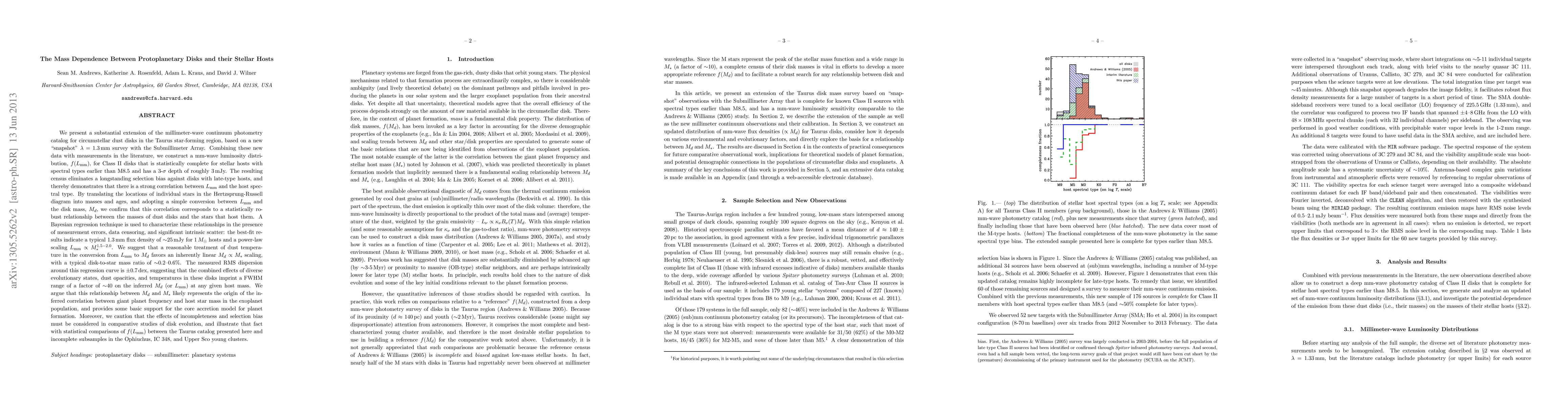This study extends mm-wave photometry catalog for Taurus disks, revealing a strong correlation between disk mass and stellar host mass. Using Bayesian regression, it finds a typical 1.3 mm flux density of 25 mJy for solar mass hosts and a power-law scaling L_mm ∝ M_star^1.5-2.0. The research suggests a linear M_disk ∝ M_star scaling with a disk-to-star mass ratio of ~0.2--0.6%, and highlights that the disk-mass-stellar-mass relationship likely explains the exoplanet frequency-host-mass correlation, supporting the core accretion planet formation model.