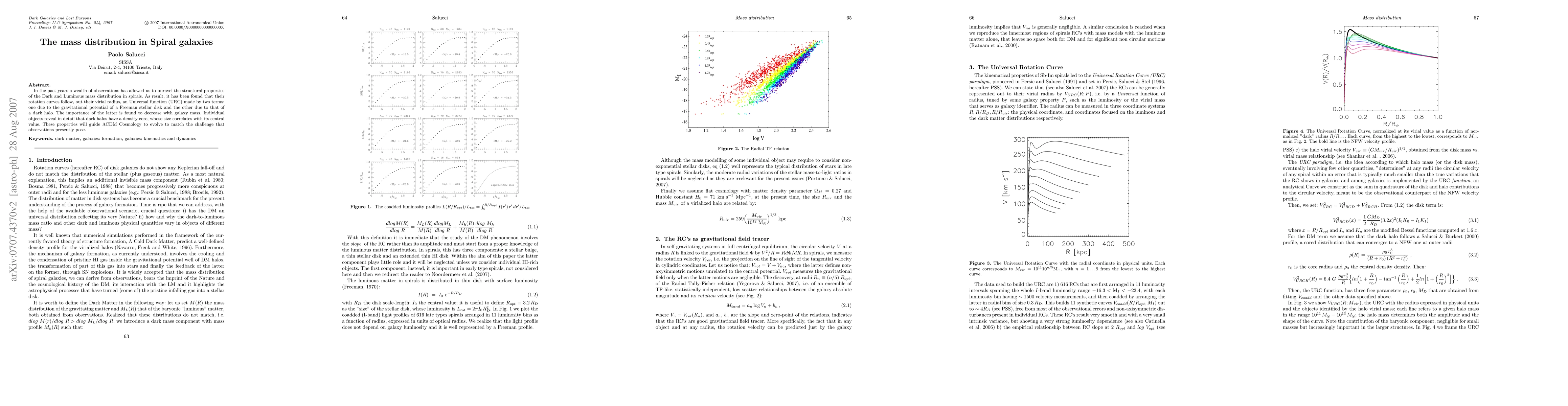 In the past years a wealth of observations has allowed us to unravel the structural properties of the Dark and Luminous mass distribution in spirals. As result, it has been found that their rotation curves follow, out their virial radius, an Universal function (URC) made by two terms: one due to the gravitational potential of a Freeman stellar disk and the other due to that of a dark halo. The importance of the latter is found to decrease with galaxy mass. Individual objects reveal in detail that dark halos have a density core, whose size correlates with its central value. These properties will guide $\Lambda$CDM Cosmology to evolve to match the challenge that observations presently pose.