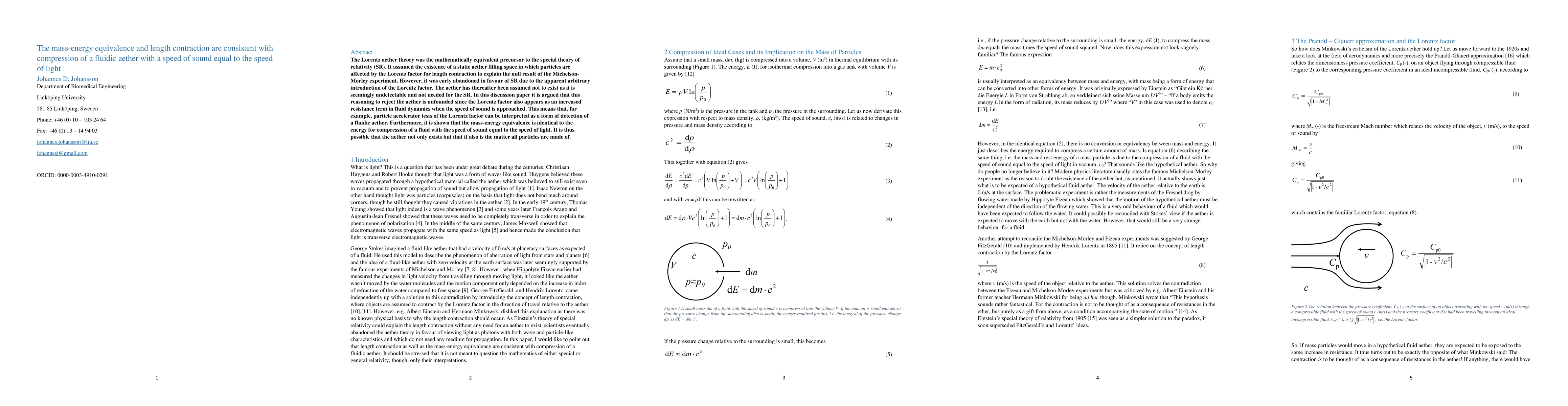 This paper argues that the Lorentz factor in special relativity can be interpreted as evidence for a fluidic aether, where the speed of sound equals the speed of light, thus reconciling mass-energy equivalence with aether compression. It proposes that the aether may be the fundamental substance from which particles are made.