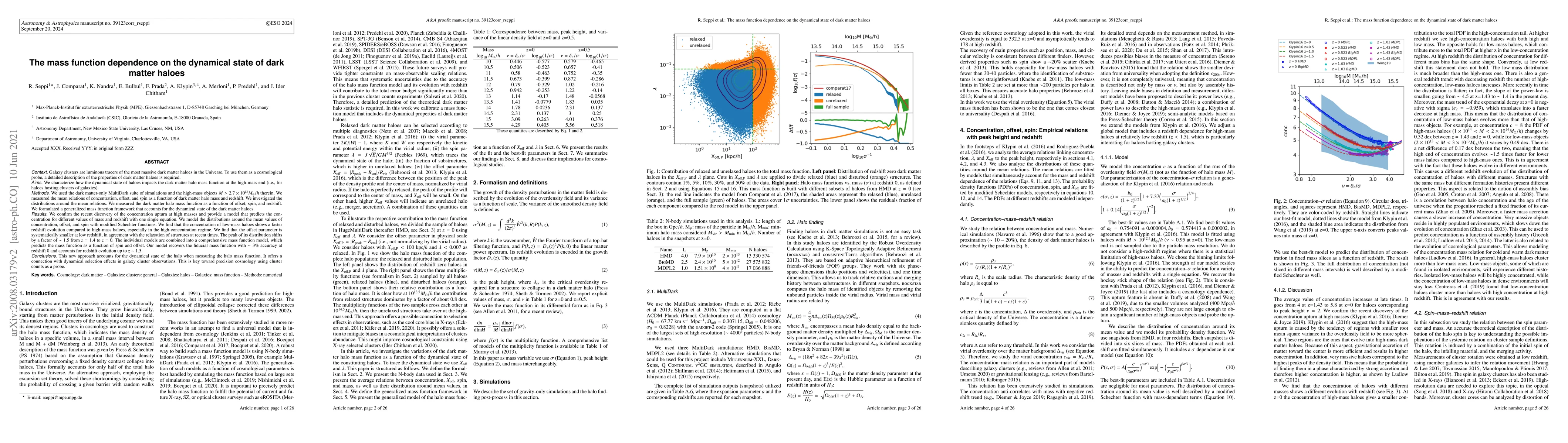 Galaxy clusters are luminous tracers of the most massive dark matter haloes in the Universe. To use them as a cosmological probe, a detailed description of the properties of dark matter haloes is required. We characterize how the dynamical state of haloes impacts the halo mass function at the high-mass end. We used the dark matter-only MultiDark suite of simulations and the high-mass objects M > 2.7e13 M/h therein. We measured mean relations of concentration, offset, and spin as a function of halo mass and redshift. We investigated the distributions around the mean relations. We measured the halo mass function as a function of offset, spin, and redshift. We formulated a generalized mass function framework that accounts for the dynamical state of the dark matter haloes. We confirm the discovery of the concentration upturn at high masses and provide a model that predicts the concentration for different values of mass and redshift with one single equation. We model the distributions around the mean concentration, offset, and spin with modified Schechter functions. The concentration of low-mass haloes shows a faster redshift evolution compared to high-mass haloes, especially in the high-concentration regime. The offset parameter is smaller at low redshift, in agreement with the relaxation of structures at recent times. The peak of its distribution shifts by a factor of 1.5 from z = 1.4 to z = 0. The individual models are combined into a comprehensive mass function model, as a function of spin and offset. Our model recovers the fiducial mass function with 3% accuracy at redshift 0 and accounts for redshift evolution up to z = 1.5. This approach accounts for the dynamical state of the halo when measuring the halo mass function. It offers a connection with dynamical selection effects in galaxy cluster observations. This is key toward precision cosmology using cluster counts as a probe.