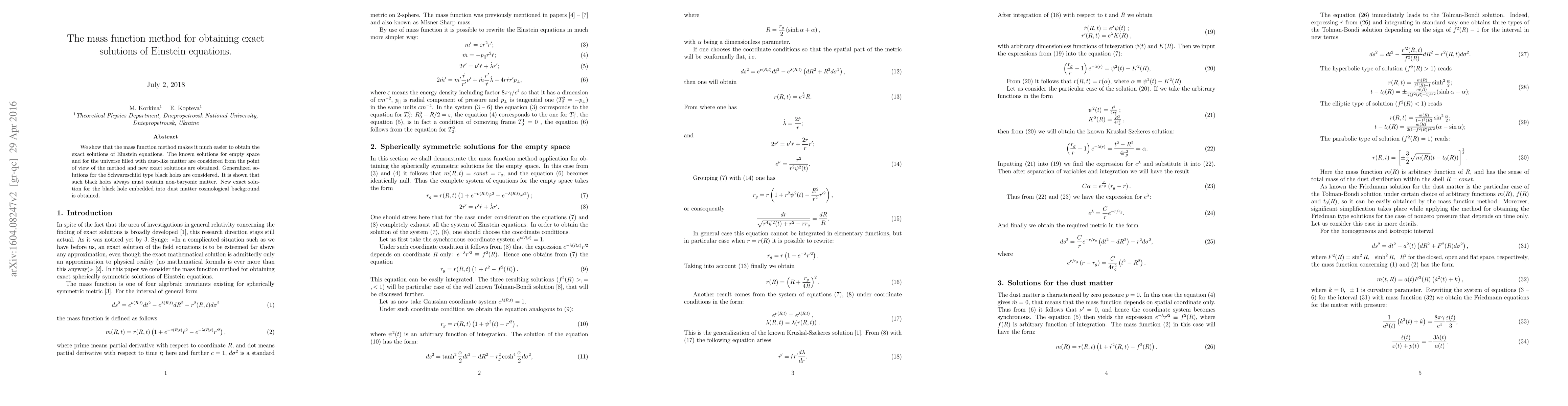This paper demonstrates the mass function method's efficacy in deriving exact solutions to Einstein's equations, including new solutions for Schwarzschild black holes and a black hole in a dust-like cosmological background, revealing the presence of non-baryonic matter in the latter.