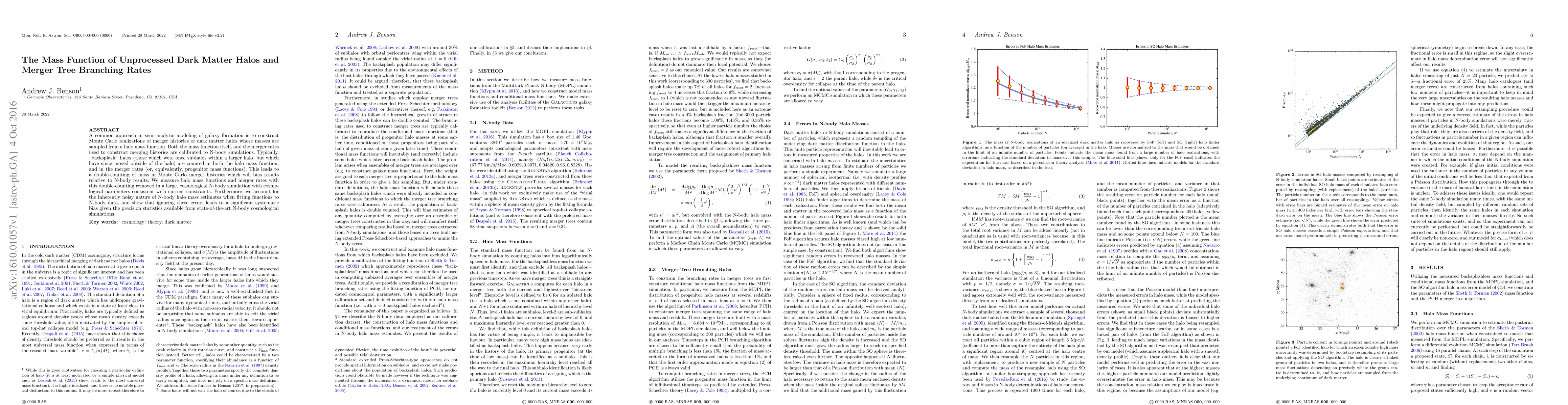 This paper investigates the mass function of dark matter halos and merger tree branching rates in galaxy formation models, identifying and correcting double-counting issues in "backsplash" halos. It also addresses the impact of N-body simulation noise on mass function fitting, demonstrating significant systematic bias if errors are ignored.