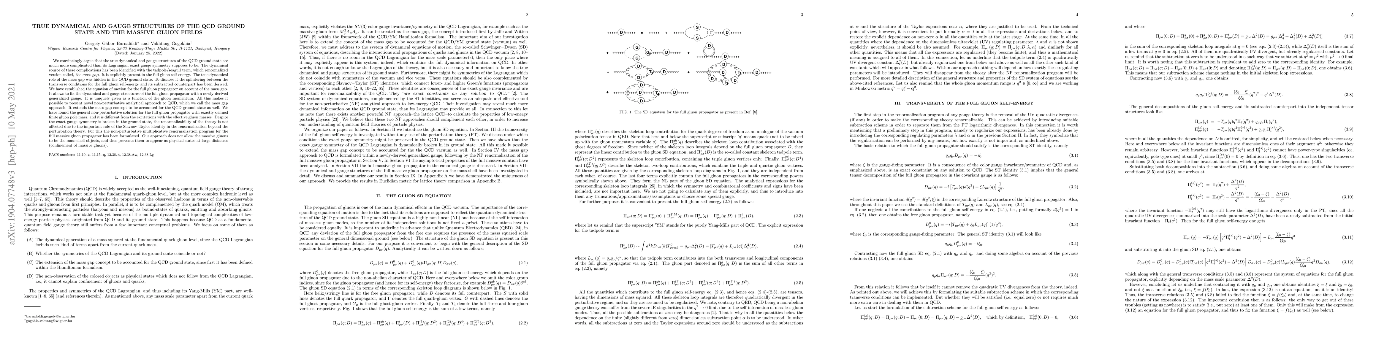 We convincingly argue that the true dynamical and gauge structures of the QCD ground state are much more complicated than its Lagrangian exact gauge symmetry supposes to be. The dynamical source of these complications has been identified with the tadpole/seagull term, which renormalized version called, {\sl the mass gap}. It is explicitly present in the full gluon self-energy. The true dynamical role of the mass gap was hidden in the QCD ground state. To disclose it the splintering between the transverse conditions for the full gluon self-energy and its subtracted counterpart has been derived. We have established the equation of motion for the full gluon propagator on account of the mass gap. It allows to fix the dynamical and gauge structures of the full gluon propagator with a newly-derived generalized gauge. It is uniquely given as a function of the gluon momentum. All this makes it possible to present novel non-perturbative analytical approach to QCD, which we call the mass gap approach. It extends the mass gap concept to be accounted for the QCD ground state as well. We have found the general non-perturbative solution for the full gluon propagator with exactly defined finite gluon pole mass, and it is different from the excitations with the effective gluon masses. Despite the exact gauge symmetry is broken in the ground state, the renormalizability of the theory is not affected due to the important role of the Slavnov-Taylor identity in the renormalization beyond the perturbation theory. For this the non-perturbative multiplicative renormalization program for the full massive gluon propagator has been formulated. Our approach does not allow the massive gluons to be the mass-shell objects, and thus prevents them to appear as physical states at large distances (confinement of massive gluons).