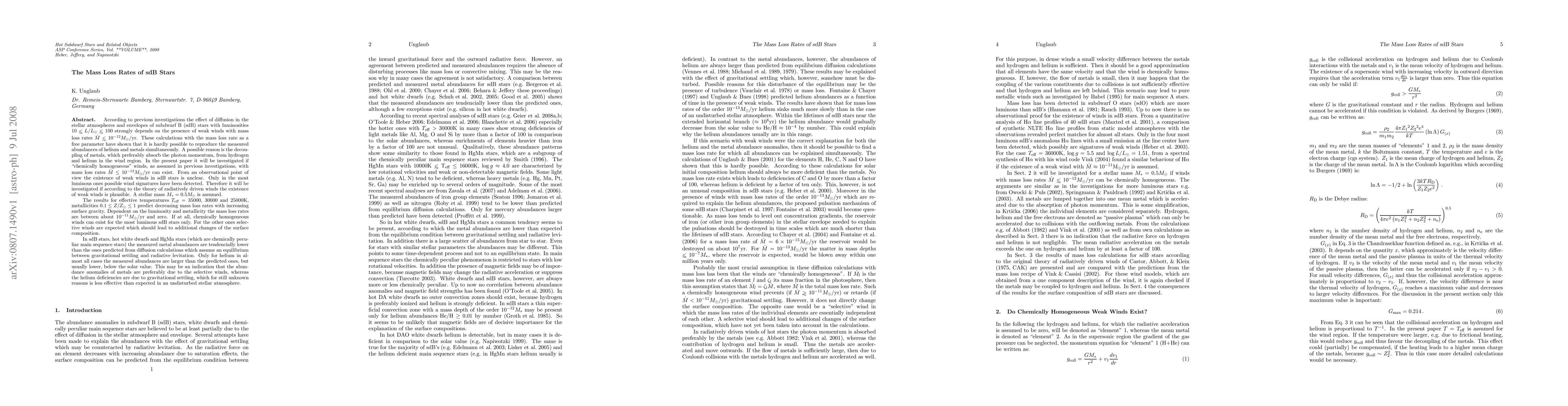 The effects of gravitational settling and radiative levitation in the stellar atmospheres and envelopes of subdwarf B (sdB) stars strongly depend on the presence of weak winds. In the paper the existence of weak radiatively driven winds is investigated from a theoretical point of view for sdB stars of half a solar mass, effective temperatures between 25000 K and 35000 K, and surface gravities log g between about 5.0 and 6.0 (cgs units). According to the results, weak winds with mass-loss rates of the order E-11 solar masses per year may exist only for the most luminous sdB stars. For the more compact ones, the decoupling of the metals from the bulk matter (hydrogen and helium) is expected in the wind region, because the momentum exchange via Coulomb collisions is not effective enough. Thus multicomponent effects are of great importance. We suggest that only the metals may be expelled from the star, whereas hydrogen and helium are in hydrostatic equilibrium.