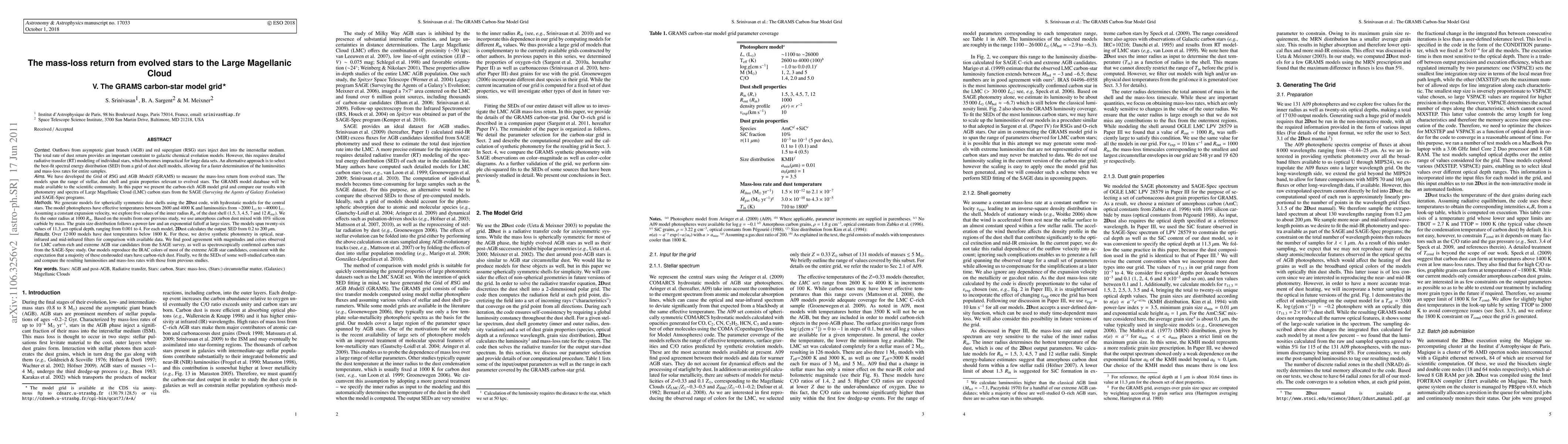This paper develops the GRAMS carbon-star model grid to estimate mass-loss rates from AGB and RSG stars in the Large Magellanic Cloud. The grid models dust shell properties and compares synthetic photometry to observational data, showing good agreement with SAGE and SAGE-Spec programs, and validates the models' ability to reproduce the spectral energy distributions of carbon stars.