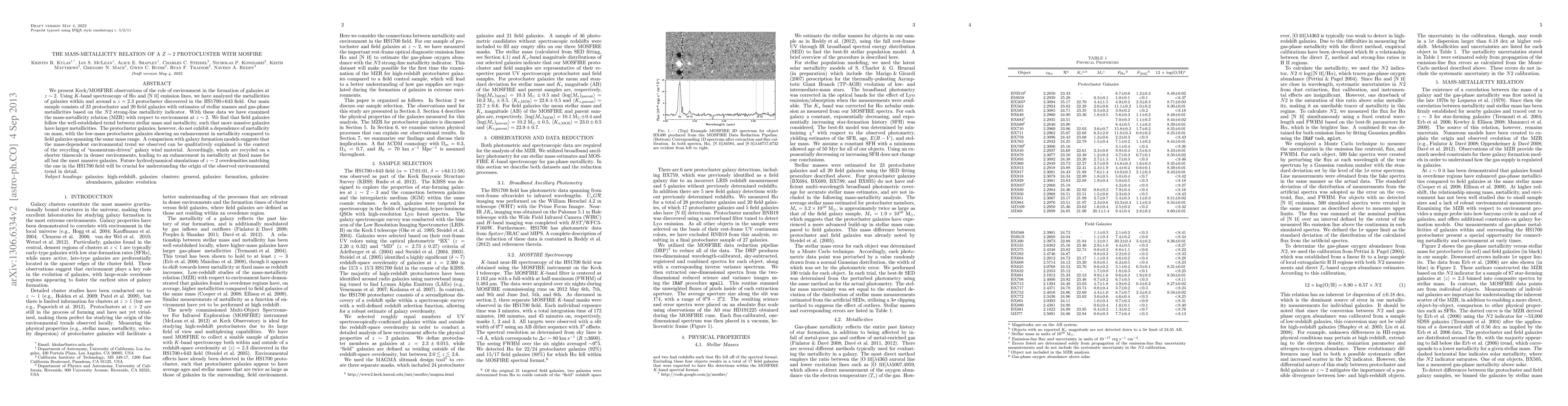 This study uses Keck/MOSFIRE observations to investigate the mass-metallicity relation in galaxies within a z=2.3 protocluster and field galaxies at z~2. Field galaxies show a typical mass-metallicity trend, while protocluster galaxies exhibit enhanced metallicity independent of mass, suggesting environmental effects from recycled wind material.