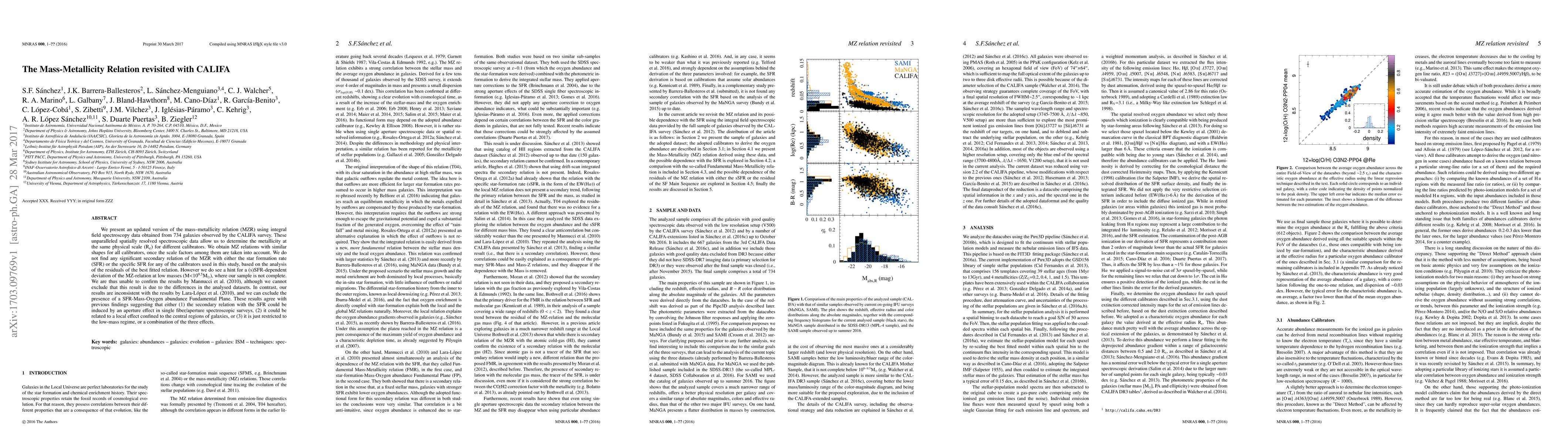 This paper updates the mass-metallicity relation (MZR) using spatially resolved spectroscopy from the CALIFA survey, finding similar MZR shapes across different calibrators. It does not confirm secondary relations with star formation rates, but hints at deviations at low masses due to incomplete sampling.