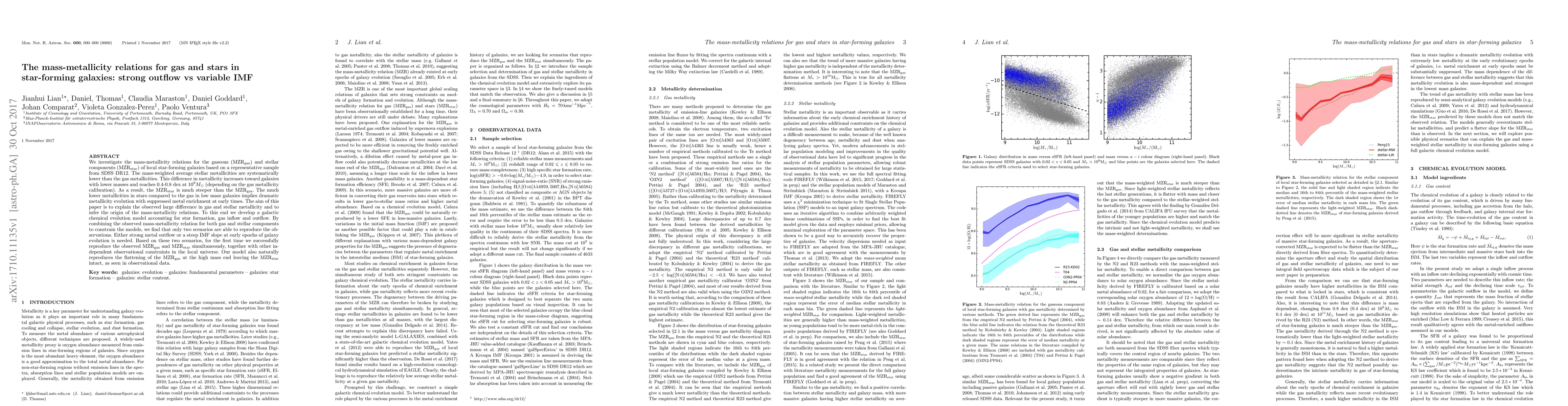 The development and application of a galactic chemical evolution model that incorporates time-dependent outflow fractions and IMF slopes to simultaneously reproduce the mass-metallicity relations for gas and stars.