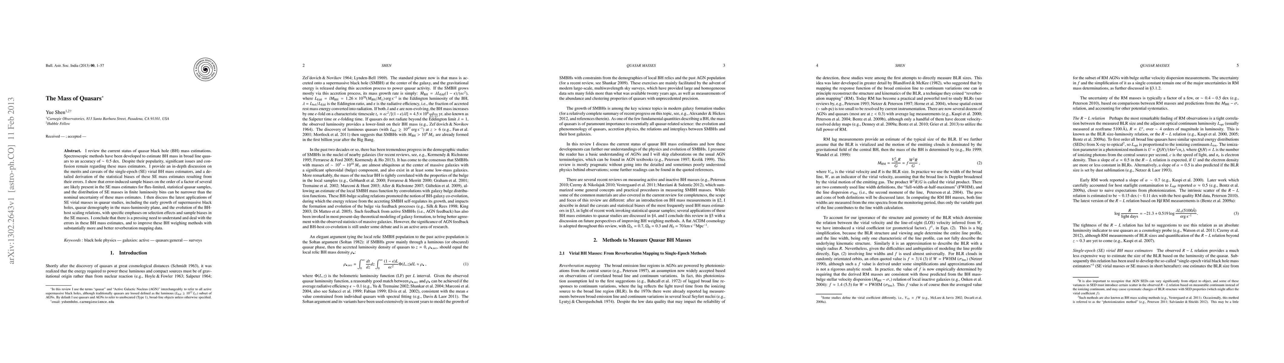 I review the current status of quasar black hole (BH) mass estimations. Spectroscopic methods have been developed to estimate BH mass in broad line quasars to an accuracy of ~0.5 dex. Despite their popularity, significant issues and confusion remain regarding these mass estimators. I provide an in-depth discussion on the merits and caveats of the single-epoch (SE) virial BH mass estimators, and a detailed derivation of the statistical biases of these SE mass estimates resulting from their errors. I show that error-induced sample biases on the order of a factor of several are likely present in the SE mass estimates for flux-limited, statistical quasar samples, and the distribution of SE masses in finite luminosity bins can be narrower than the nominal uncertainty of these mass estimates. I then discuss the latest applications of SE virial masses in quasar studies, including the early growth of supermassive black holes, quasar demography in the mass-luminosity plane, and the evolution of the BH-host scaling relations, with specific emphases on selection effects and sample biases in the SE masses. I conclude that there is a pressing need to understand and deal with the errors in these BH mass estimates, and to improve these BH weighing methods with substantially more and better reverberation mapping data.