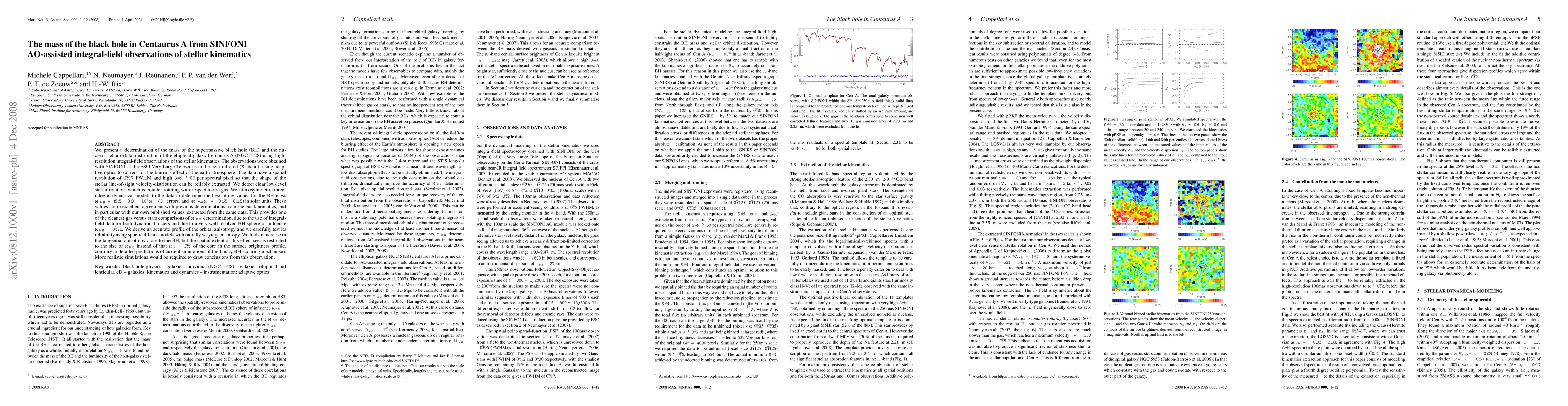 This paper determines the mass of the supermassive black hole in Centaurus A using high-resolution stellar kinematics from SINFONI AO-assisted observations, finding M_BH=(5.5±3.0)×10^7 Msun. It also detects counter-rotating stellar rotation and provides a detailed analysis of the orbital anisotropy profile, noting an increase in tangential anisotropy near the black hole.