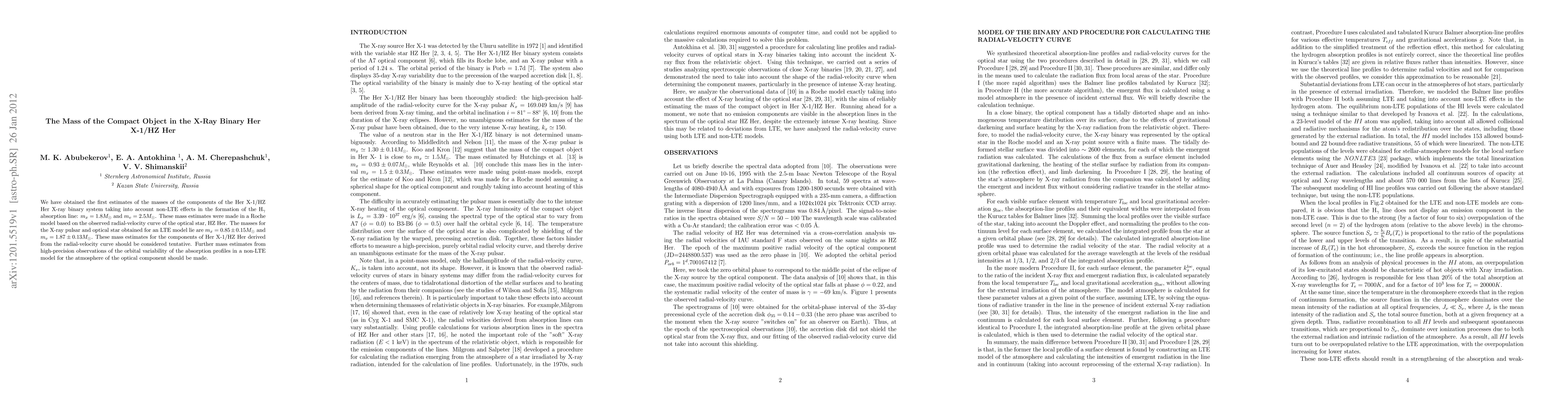 This research provides new mass estimates for the components of the Her X-1/HZ Her X-ray binary system, finding mx=1.8Msun for the X-ray pulsar and mv=2.5Msun for the optical star HZ Her, using non-LTE effects. These estimates differ significantly from previous LTE model results and suggest further high-precision observations are needed for confirmation.