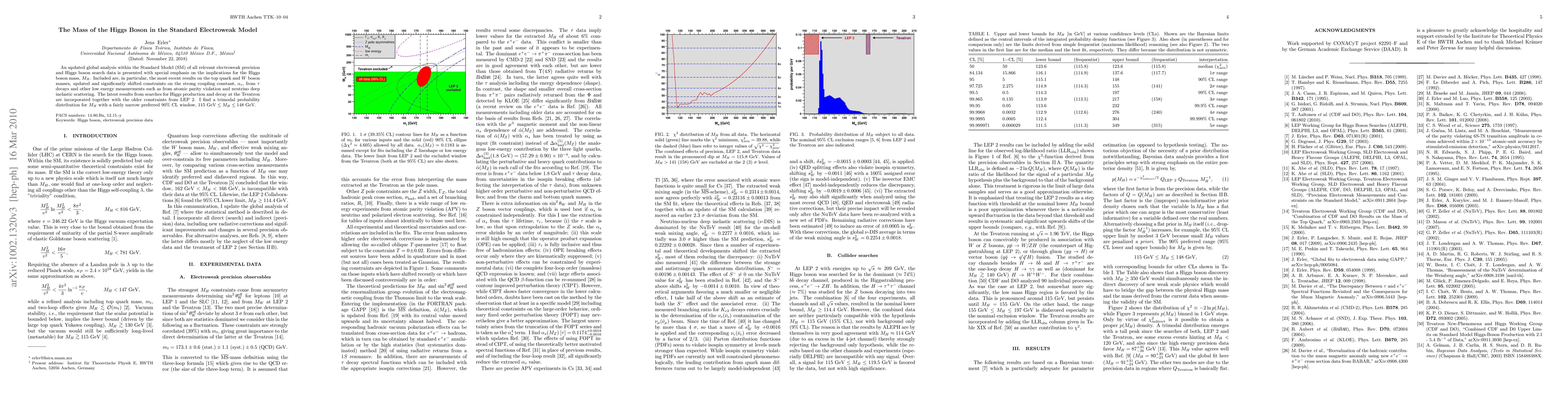 An updated global analysis within the Standard Model (SM) of all relevant electroweak precision and Higgs boson search data is presented with special emphasis on the implications for the Higgs boson mass, M_H. Included are, in particular, the most recent results on the top quark and W boson masses, updated and significantly shifted constraints on the strong coupling constant, alpha_s, from tau decays and other low energy measurements such as from atomic parity violation and neutrino deep inelastic scattering. The latest results from searches for Higgs production and decay at the Tevatron are incorporated together with the older constraints from LEP 2. I find a trimodal probability distribution for M_H with a fairly narrow preferred 90% CL window, 115 GeV < M_H < 148 GeV.