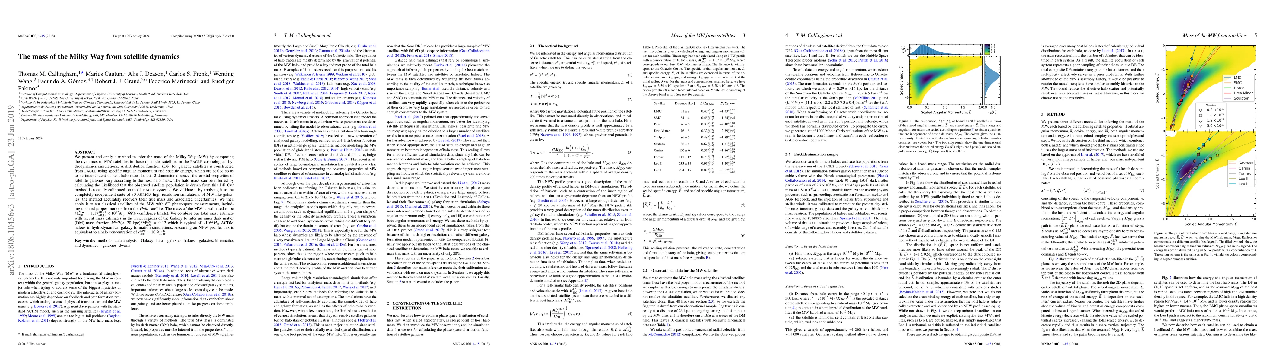 Researchers used satellite dynamics to estimate the mass of the Milky Way as $1.17_{-0.15}^{+0.21} imes10^{12}M_{ odot}$, combining with inner dark matter estimates for a total mass of approximately $2 imes10^{12}M_{ odot}$.