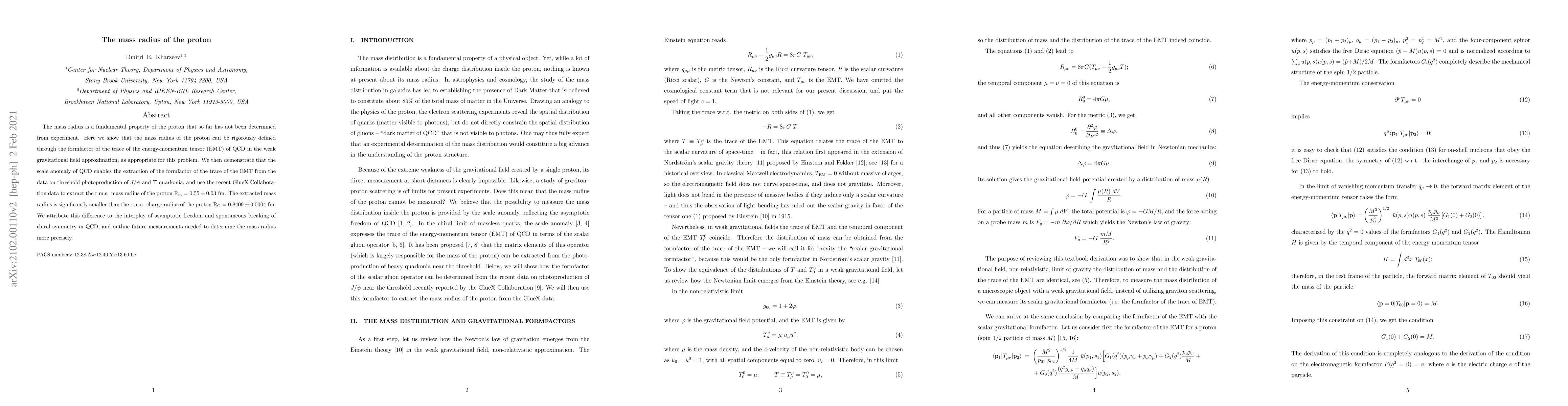 This paper rigorously defines the mass radius of the proton through the formfactor of the trace of the energy-momentum tensor in QCD, extracting it from photoproduction data and reporting ${\rm R_m = 0.55 \pm 0.03 \ fm}$. The extracted mass radius is notably smaller than the charge radius, attributed to QCD's asymptotic freedom and chiral symmetry breaking.