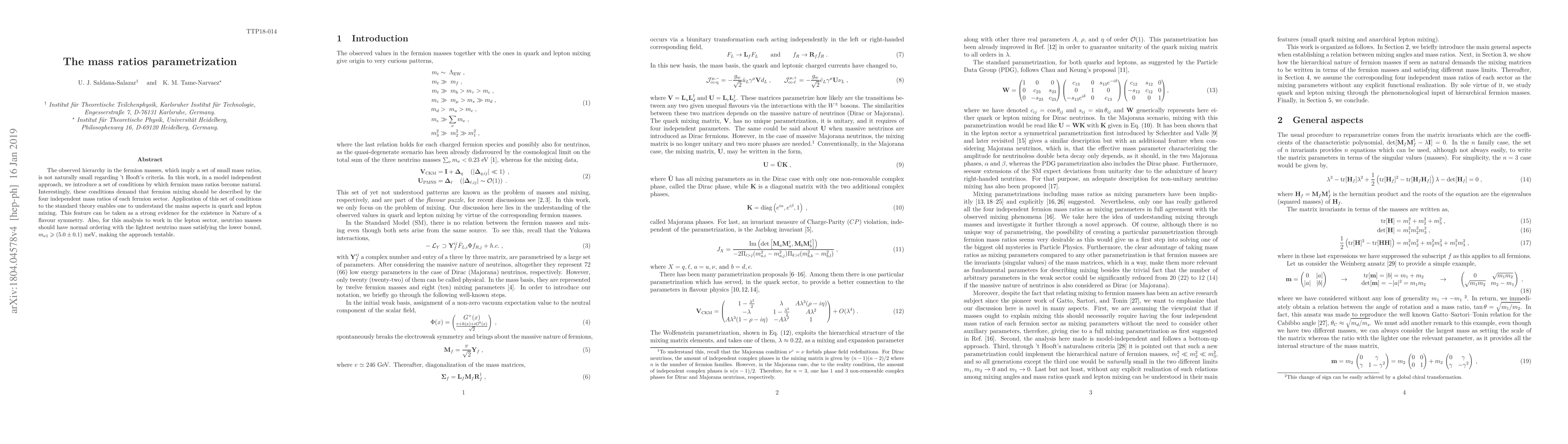 The observed hierarchy in the fermion masses, which imply a set of small mass ratios, is not naturally small regarding 't Hooft's criteria. In this work, in a model independent approach, we introduce a set of conditions by which fermion mass ratios become natural. Interestingly, these conditions demand that fermion mixing should be described by the four independent mass ratios of each fermion sector. Application of this set of conditions to the standard theory enables one to understand the mains aspects in quark and lepton mixing. This feature can be taken as a strong evidence for the existence in Nature of a flavour symmetry. Also, for this analysis to work in the lepton sector, neutrino masses should have normal ordering with the lightest neutrino mass satisfying the lower bound, $m_{\nu 1} \geqslant (5.0\pm 0.1) \text{ meV}$, making the approach testable.