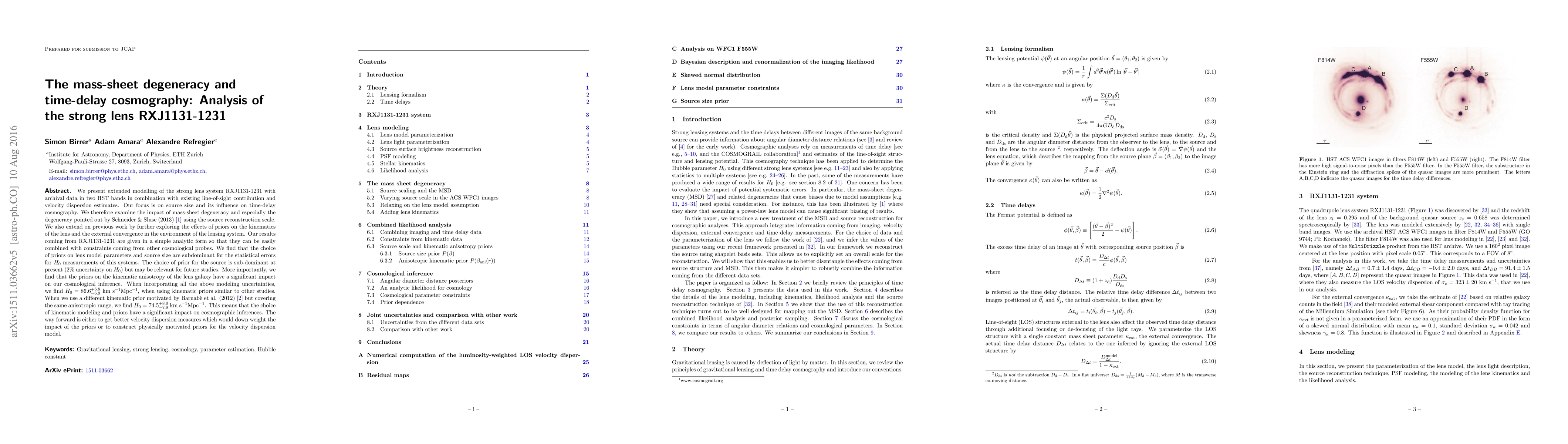 This paper analyzes the strong lens system RXJ1131-1231 to investigate the mass-sheet degeneracy and its impact on time-delay cosmography, finding that while source size uncertainties contribute minimally to $H_0$ errors, the choice of kinematic anisotropy priors significantly affects cosmological inferences, yielding $H_0 = 86.6^{+6.8}_{-6.9}$ km s$^{-1}$Mpc$^{-1}$ under one set of priors and $H_0 = 74.5^{+8.0}_{-7.8}$ km s$^{-1}$Mpc$^{-1}$ under another.