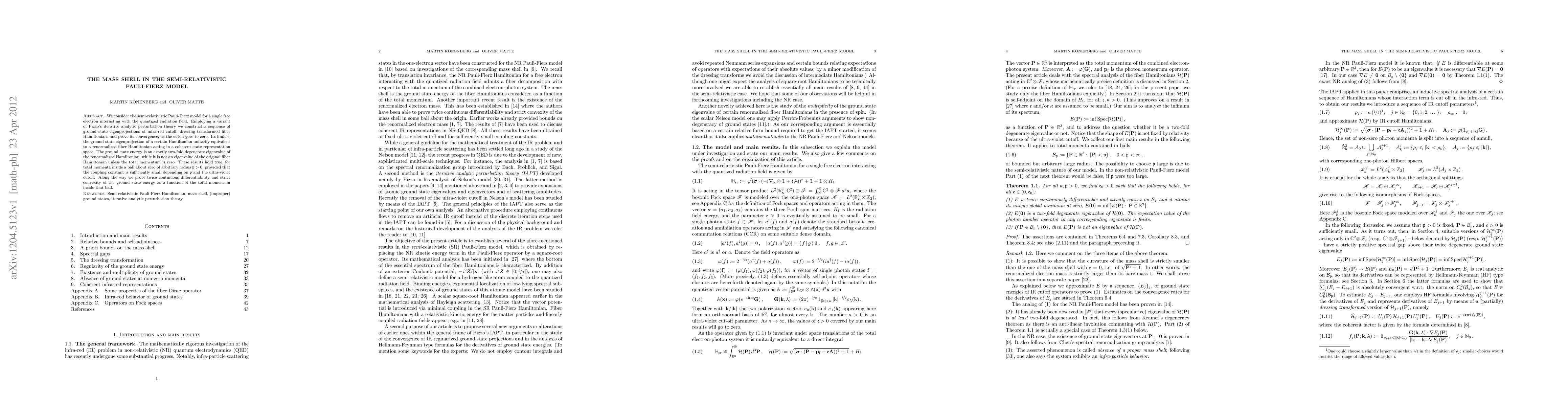 This paper investigates the ground state energy of a single electron interacting with radiation in the semi-relativistic Pauli-Fierz model. It finds that the energy is exactly two-fold degenerate for certain total momenta and is strictly convex as a function of momentum.