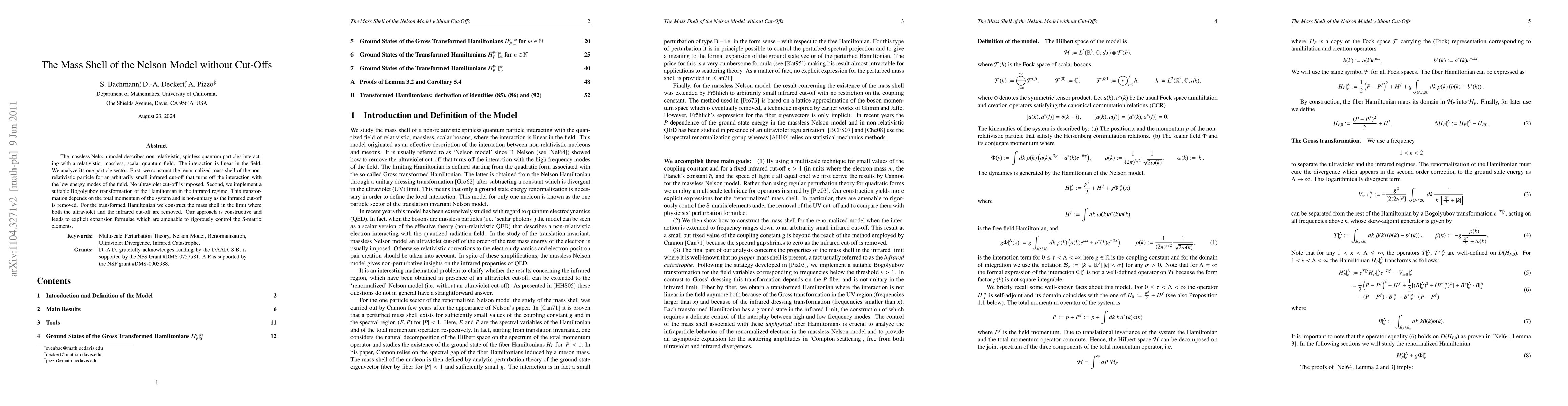 This research constructs the renormalized mass shell of a non-relativistic particle in the Nelson model, which describes interactions between non-relativistic particles and relativistic, massless scalar fields. The method involves an infrared cut-off for low energy modes, a Bogolyubov transformation, and explicit expansion formulae for S-matrix elements, all without ultraviolet cut-offs.