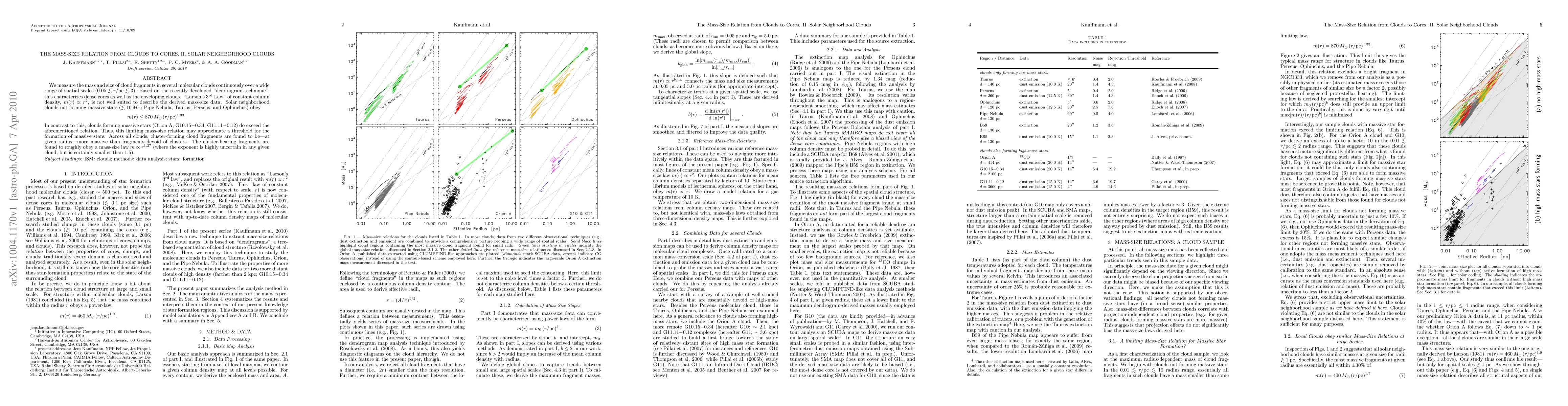 We measure the mass and size of cloud fragments in several molecular clouds continuously over a wide range of spatial scales (0.05 < r / pc < 3). Based on the recently developed "dendrogram-technique", this characterizes dense cores as well as the enveloping clouds. "Larson's 3rd Law" of constant column density, m(r) = C*r^2, is not well suited to describe the derived mass-size data. Solar neighborhood clouds not forming massive stars (< 10 M_sun; Pipe Nebula, Taurus, Perseus, and Ophiuchus) obey m(r) < 870 M_sun (r / pc)^1.33 . In contrast to this, clouds forming massive stars (Orion A, G10.15$-$0.34, G11.11$-$0.12) do exceed the aforementioned relation. Thus, this limiting mass-size relation may approximate a threshold for the formation of massive stars. Across all clouds, cluster-forming cloud fragments are found to be---at given radius---more massive than fragments devoid of clusters. The cluster-bearing fragments are found to roughly obey a mass-size law m = C*r^1.27 (where the exponent is highly uncertain in any given cloud, but is certainly smaller than 1.5).
