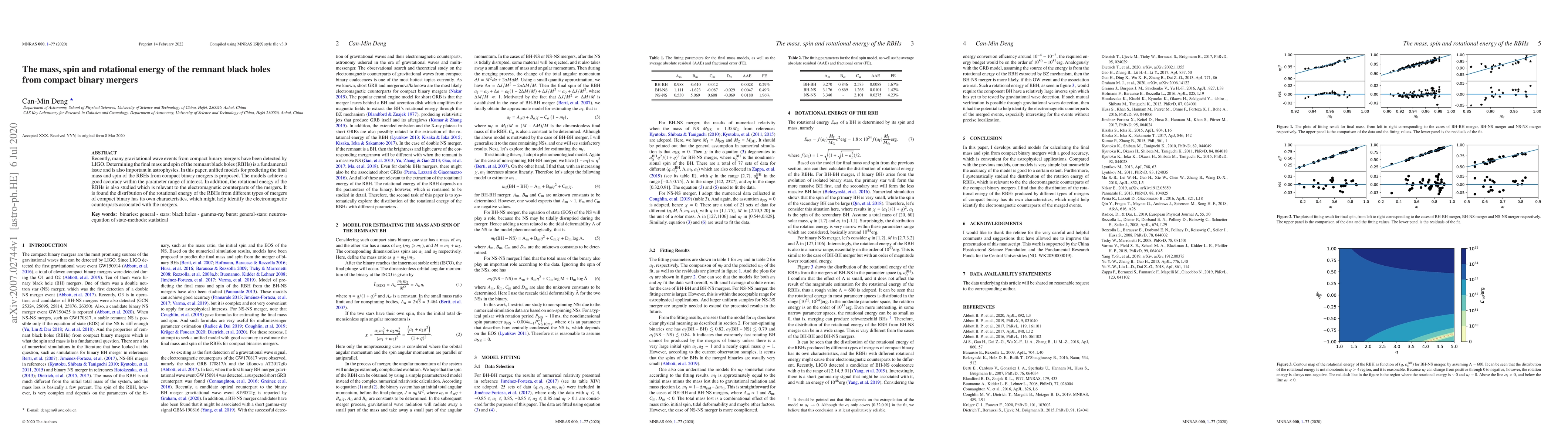 This paper proposes unified models to predict the final mass, spin, and rotational energy of remnant black holes from compact binary mergers, achieving good accuracy. The study also reveals distinct rotational energy distributions for different merger types, potentially aiding in identifying electromagnetic counterparts associated with these events.